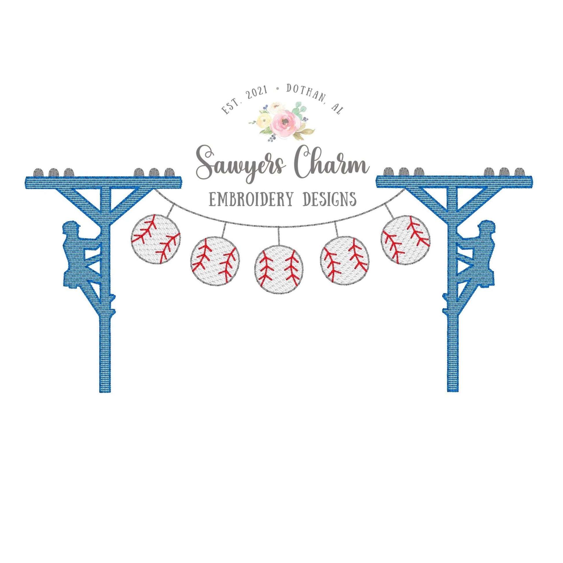 Baseball lineman bunting banner, sketch stitch machine embroidery design file, quick stitch, bean stitch, summer, sports college, pitcher