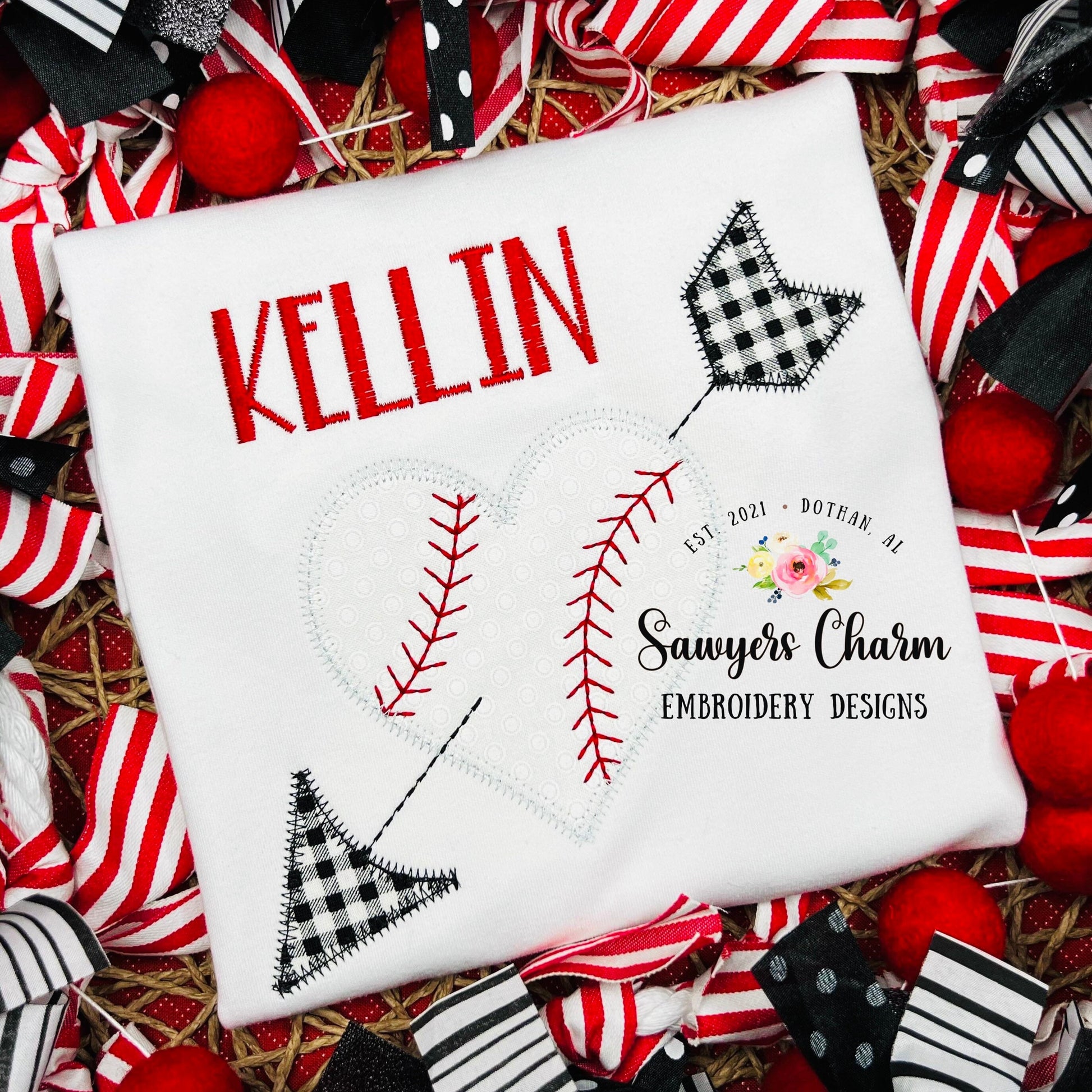 Baseball sports ball heart with arrow, zigzag applique machine embroidery design file, baseball, Valentine's Day, love, cupid, XOXO