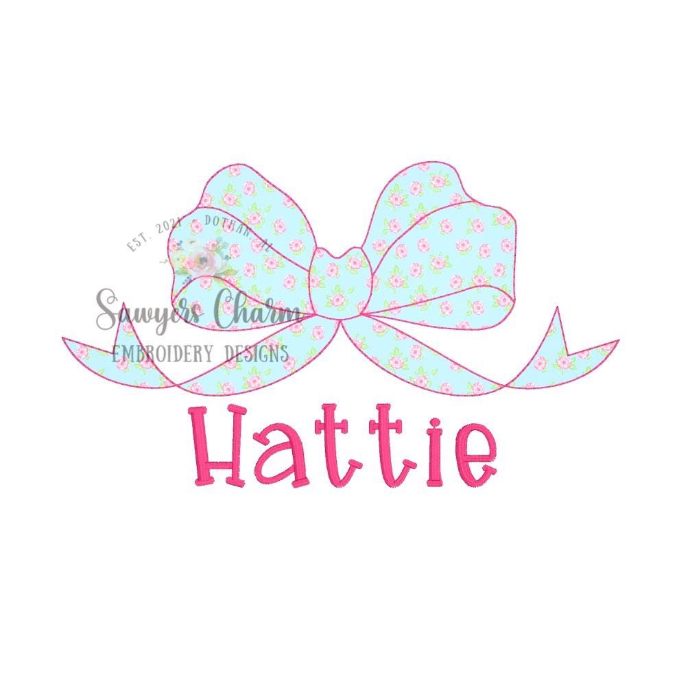 Bow bean stitch machine applique embroidery design file, quick stitch, vintage stitch, monogram topper, girly, streamers