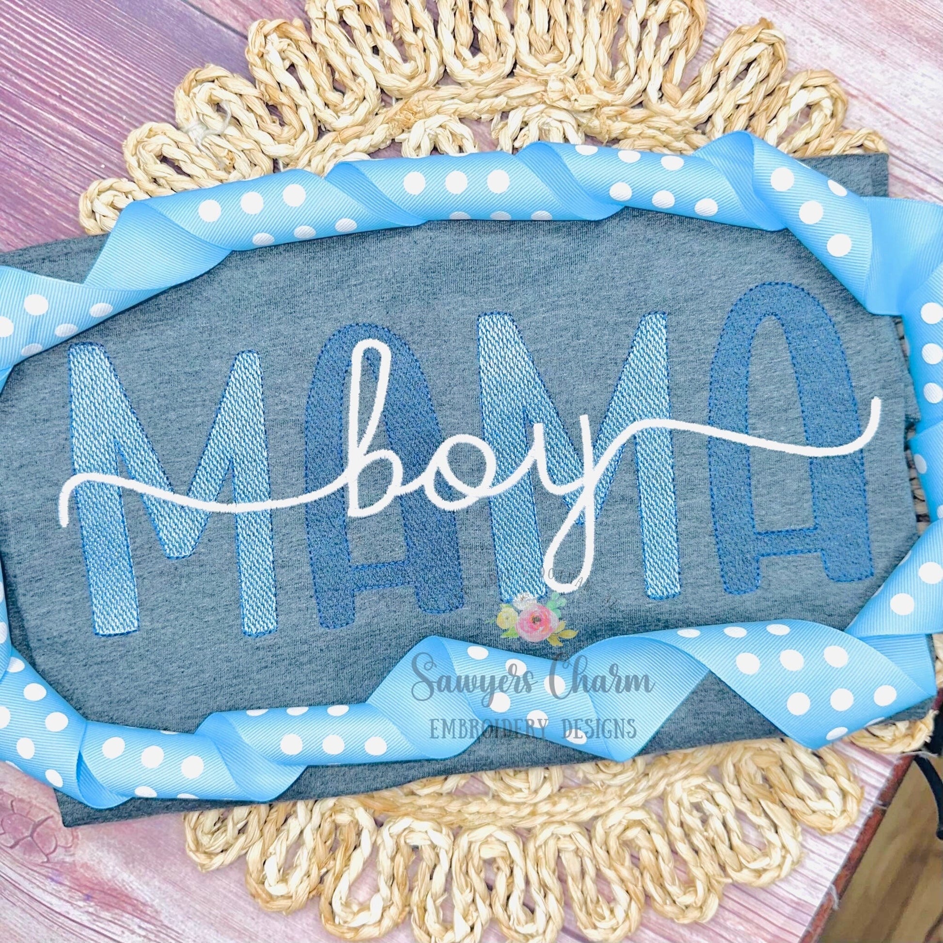 Boy Mama light fill sketch stitch machine embroidery design file, satin stitch, vintage retro, Mother's Day, mom, 12" through 6" wide
