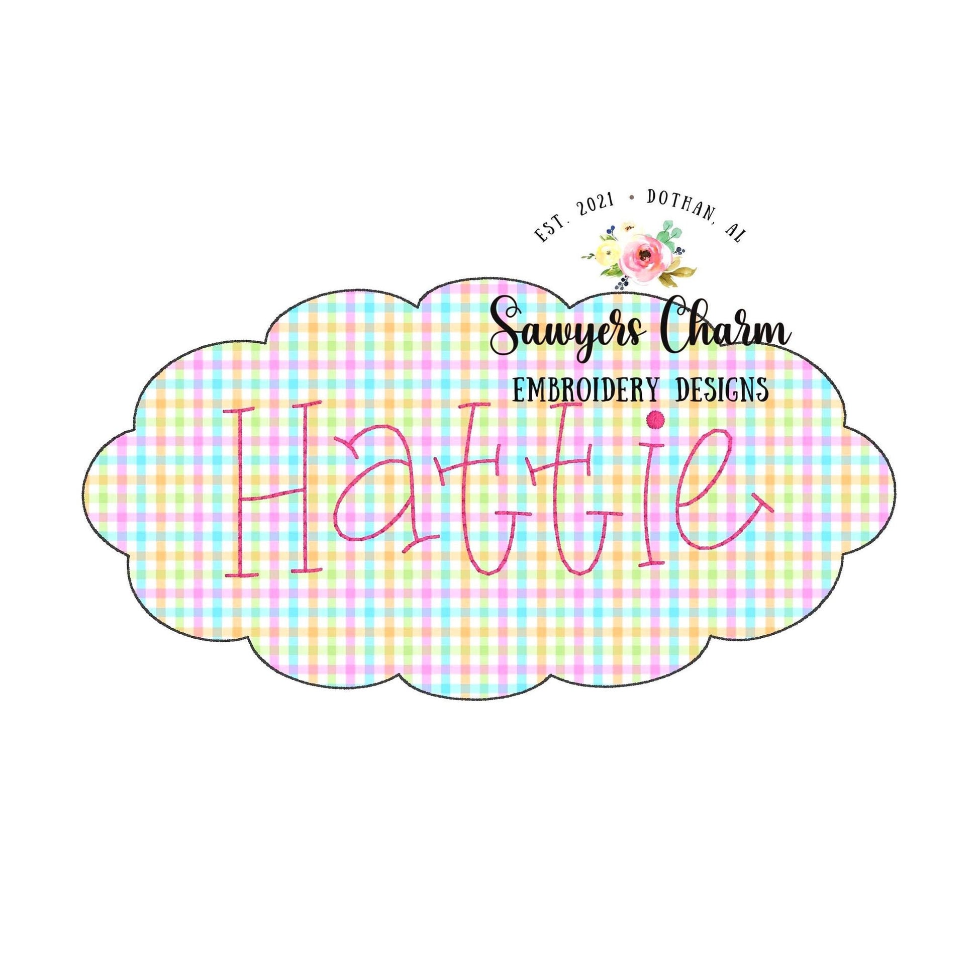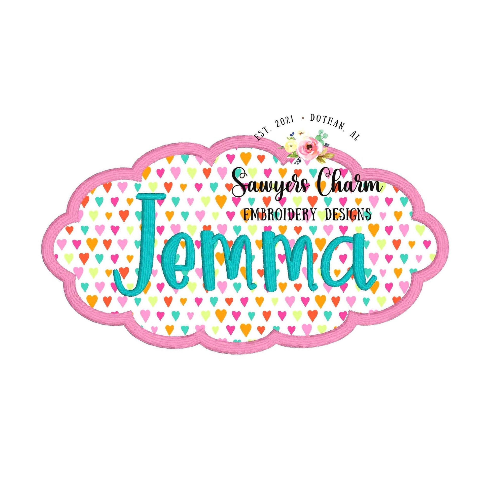 BUNDLE 5 scallop oval name plate/frame machine applique embroidery design file, bean stitch, zigzag, scribble, blanket stitch, satin stitch