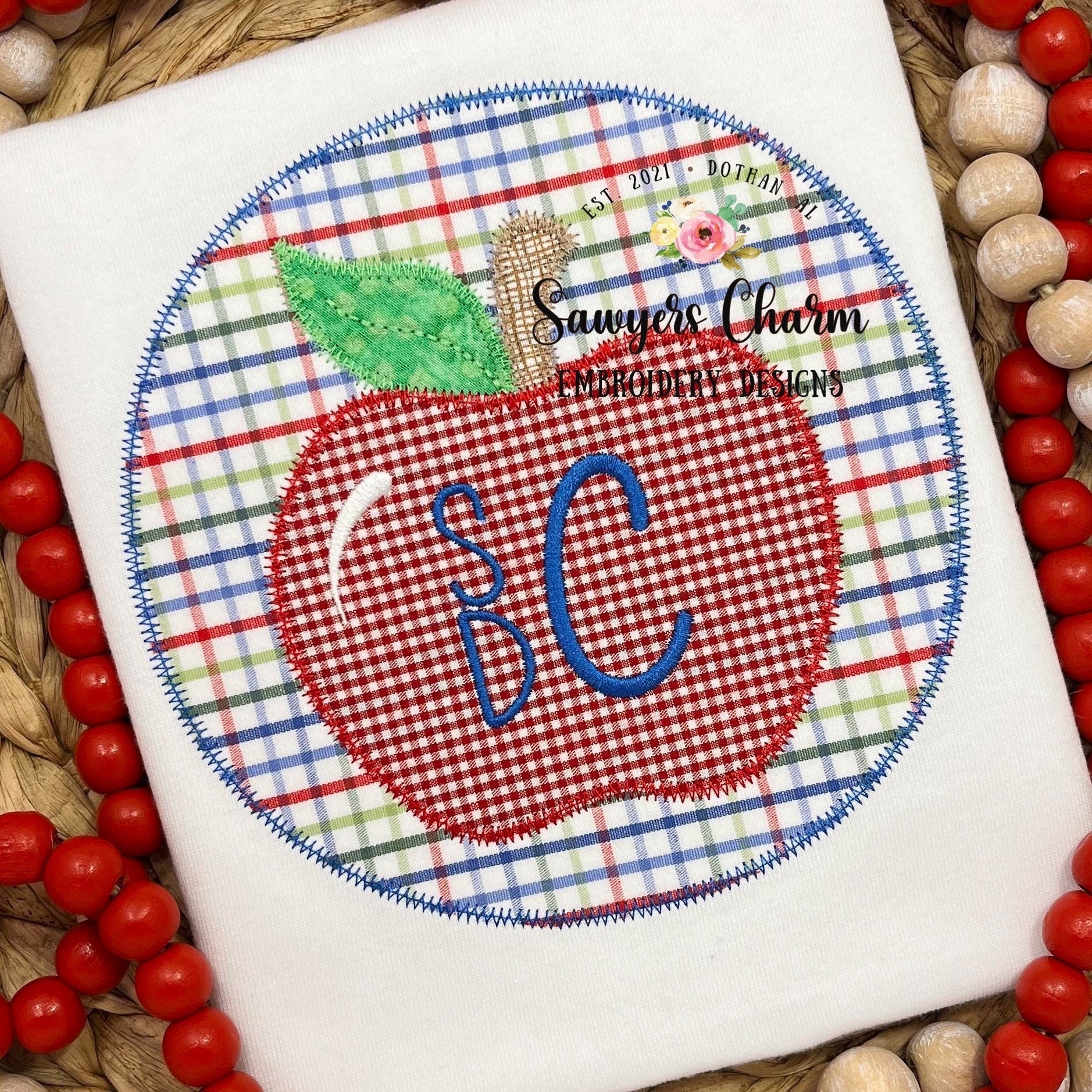BUNDLE Apple in circle patch, bean & zig zag stitch applique machine embroidery design file, back to school, quick stitch
