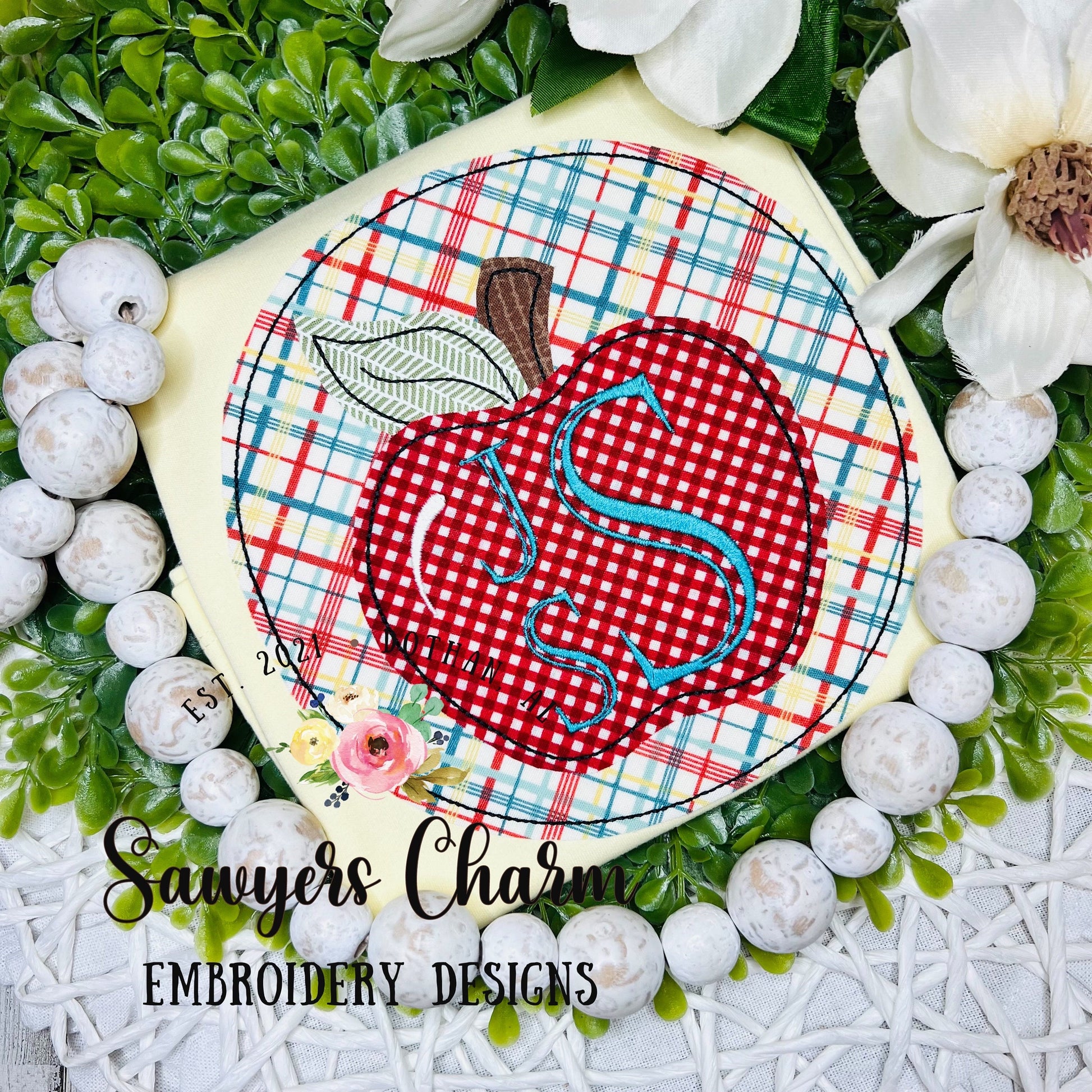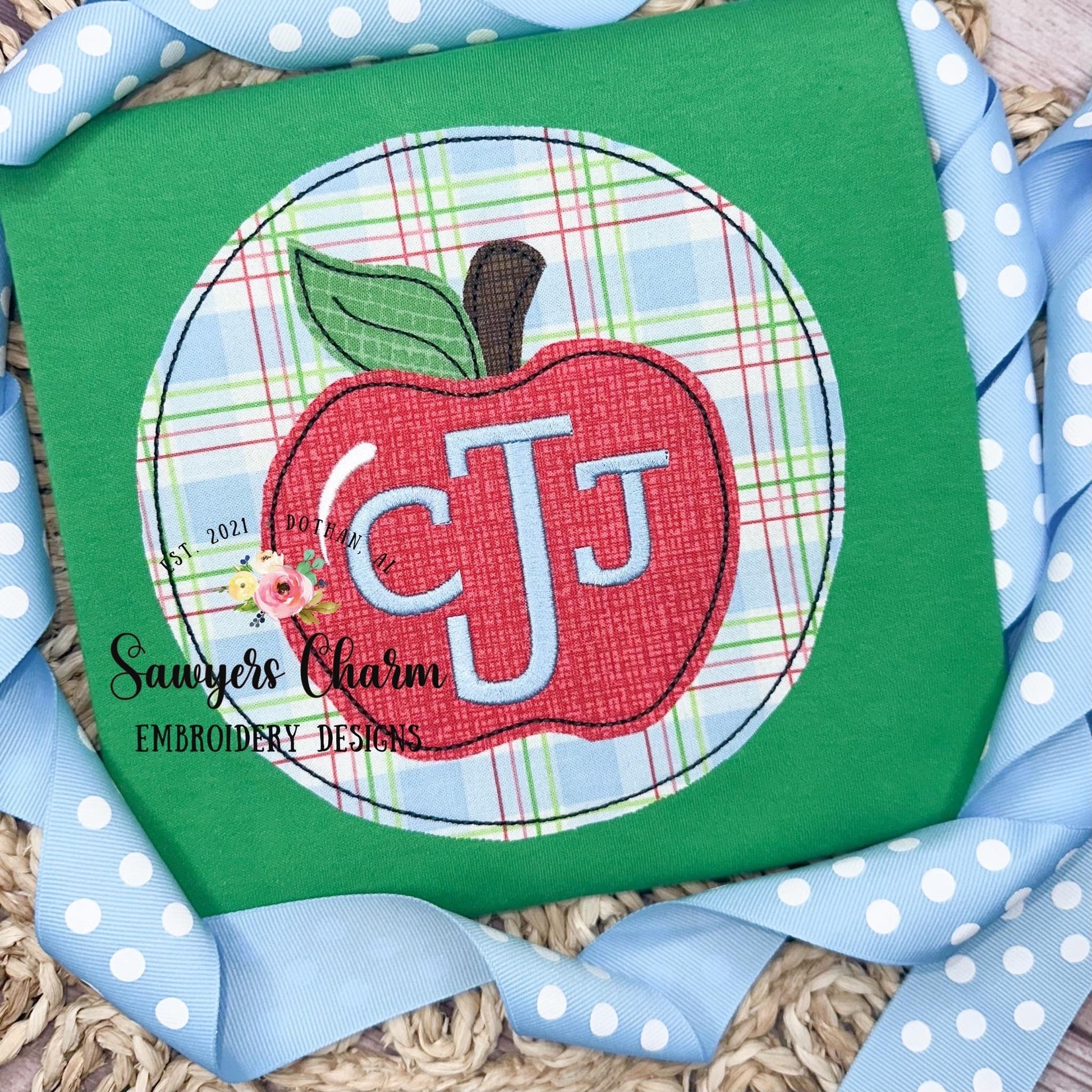This embroidery file comes in 4 sizes.....4x4, 5x5, 6x6, and 8x8. This applique design comes in bean stitch and zig zag stitch.