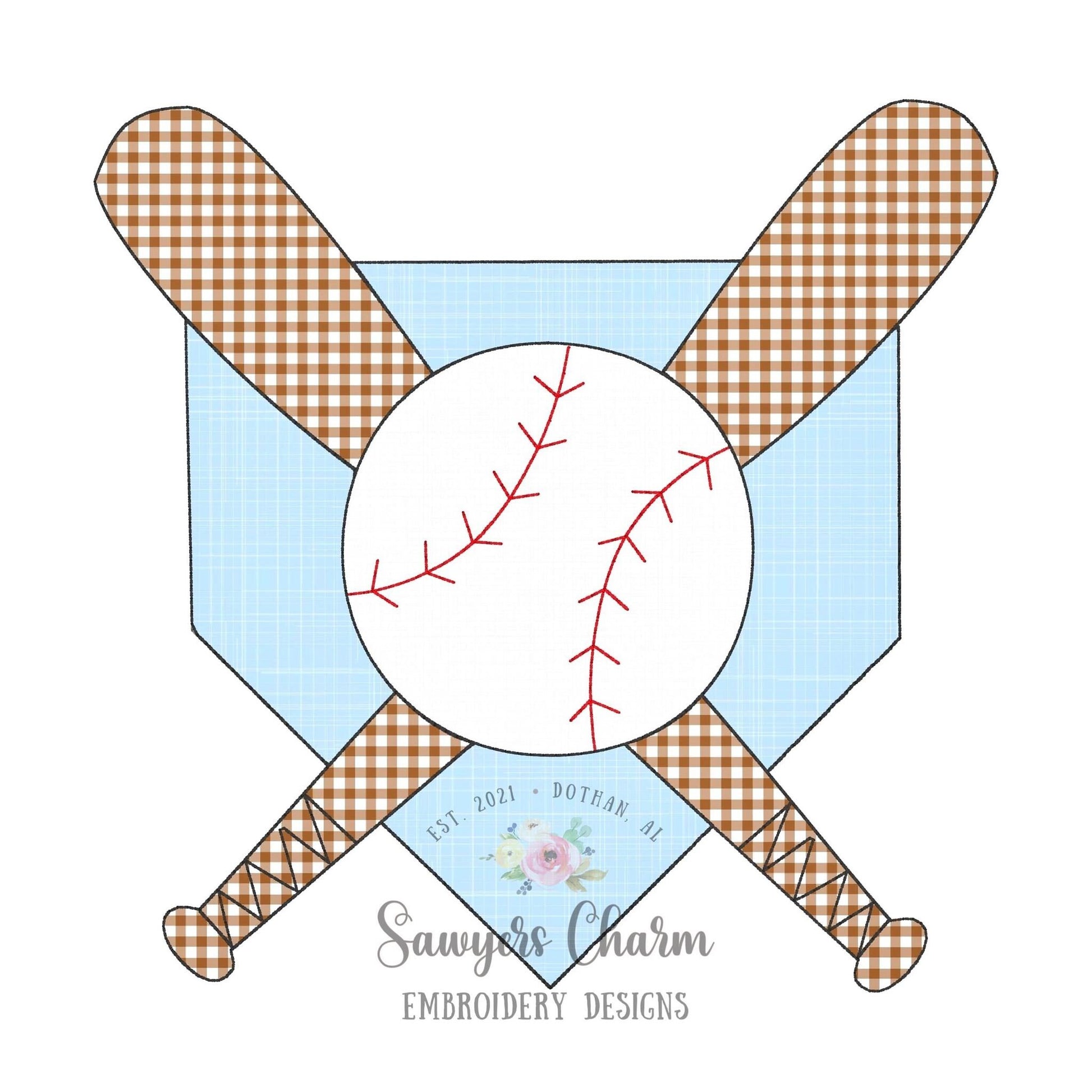 BUNDLE Baseball bats/home plate with & without bow bean stitch applique machine embroidery design file, softball ballgame sports outfield