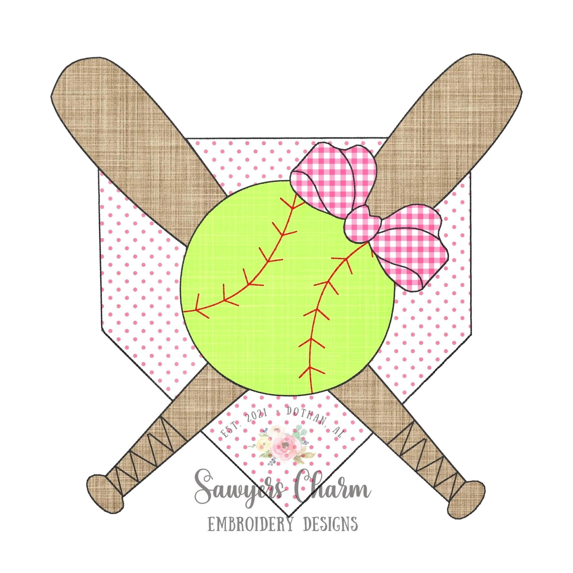 This embroidery file comes in 4 sizes....4x4, 5x5, 6x6, and 7x7. You are getting the bundle that includes the version with the bow and without the bow. This is the bean stitch applique design. Perfect for those boys and girls, and perfect for softball or baseball depending on colors used. :)