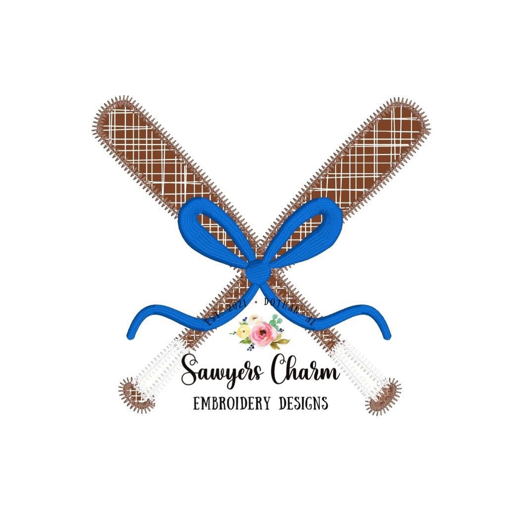 BUNDLE Baseball bats with & without bow zig zag stitch applique, machine embroidery design file, quick stitch, summer, sports, MLB, ball