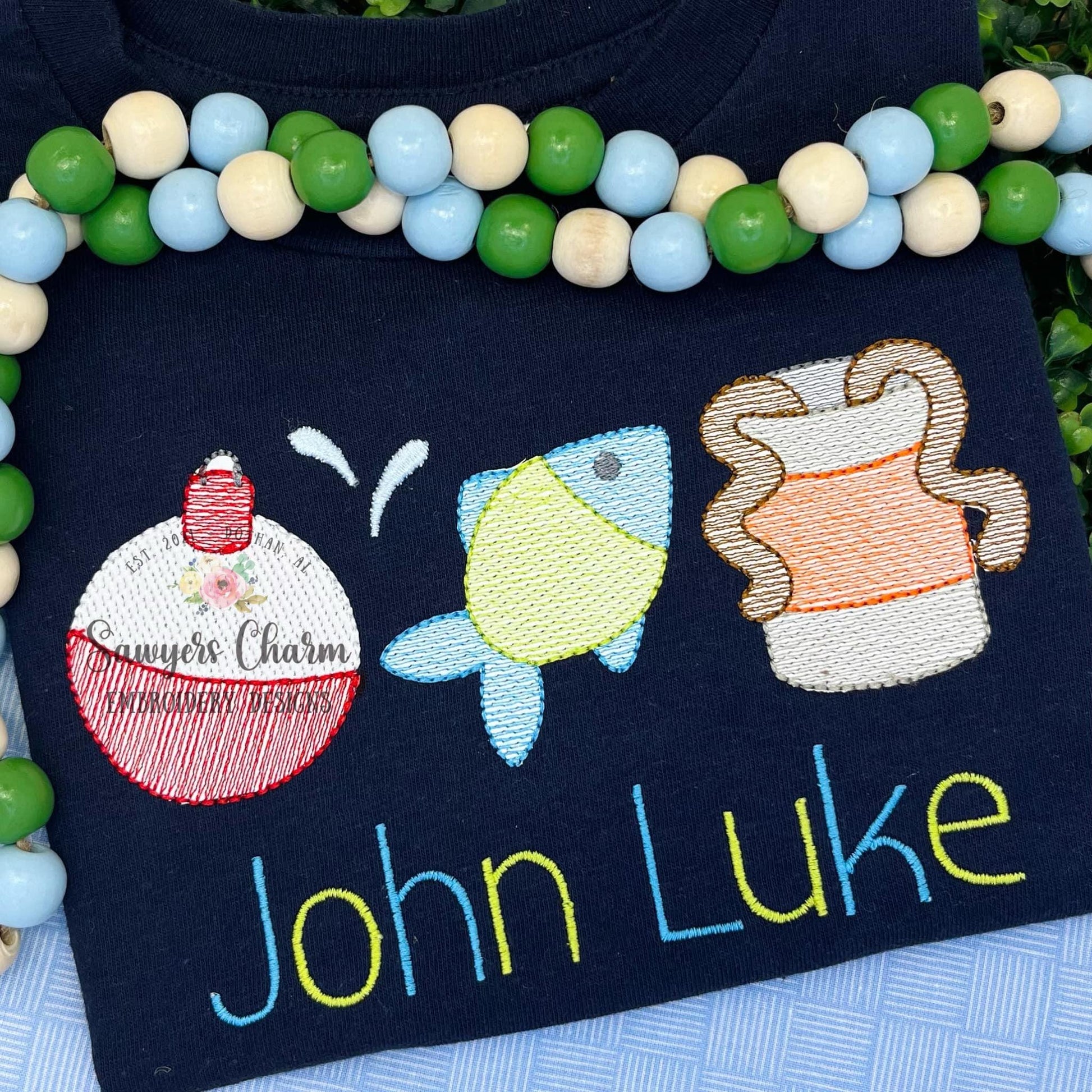 This embroidery file comes in several sizes.....5 inches wide, 6 inches wide, 5x7 hoop, 8x8 hoop, and 9 inches wide. This is a bundle that includes the light fill sketch stitch design with a bow on the bobber and without the bow. Perfect for boys or girls.