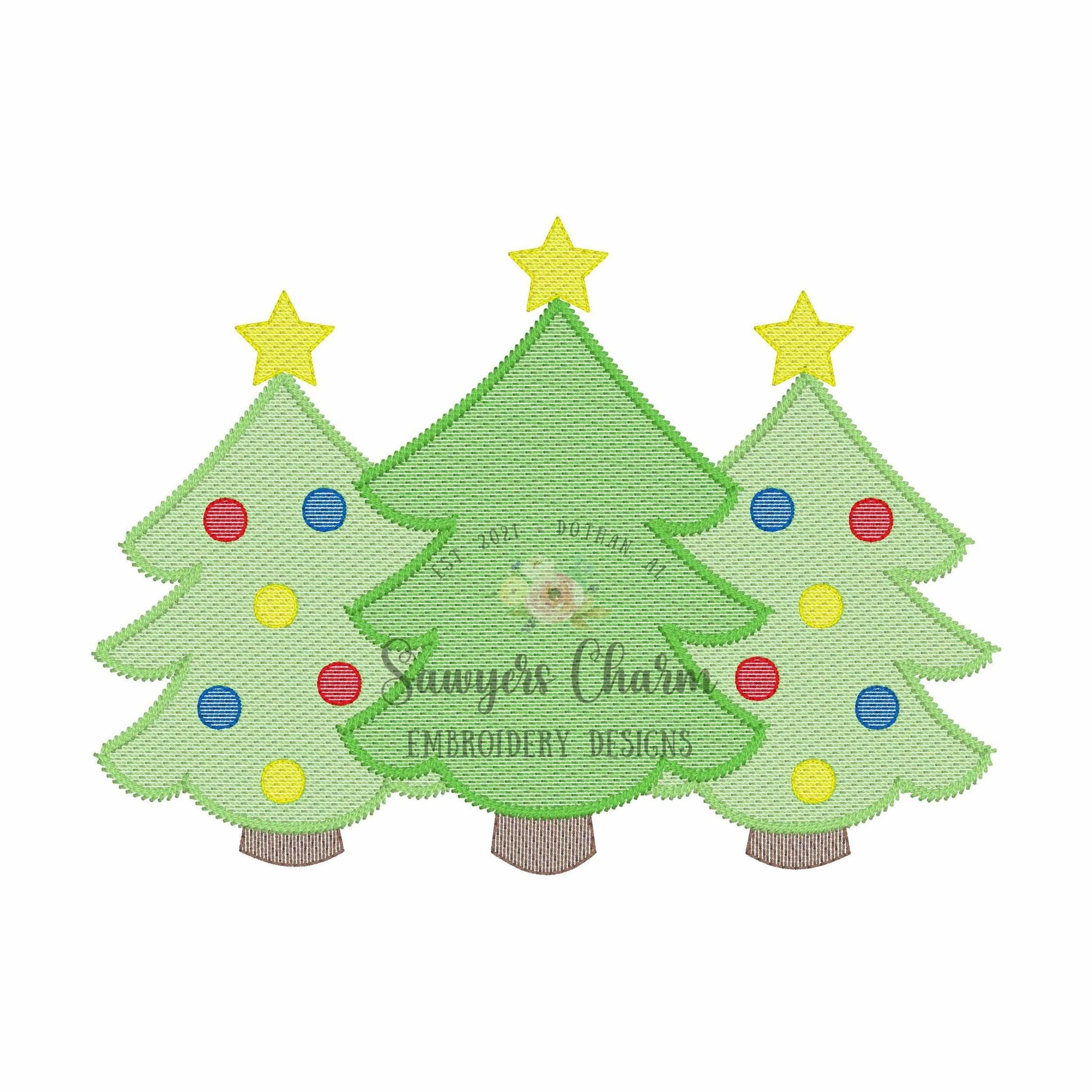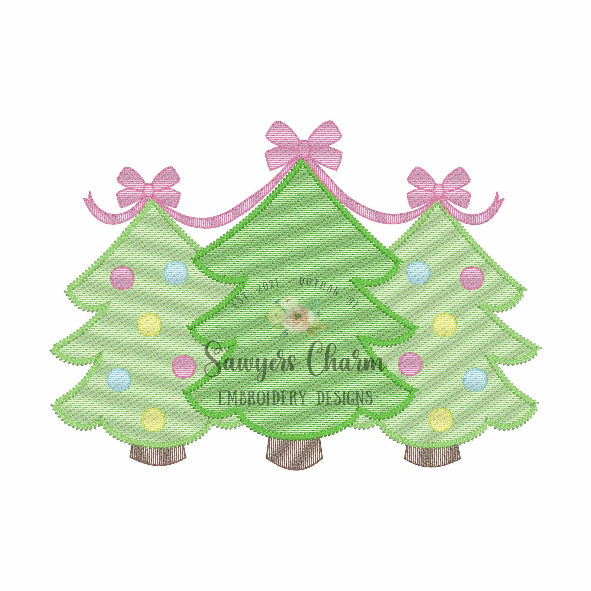 BUNDLE Christmas tree trio with bows & stars sketch stitch machine embroidery design file, quick stitch, ornaments, holidays, boho, woodland