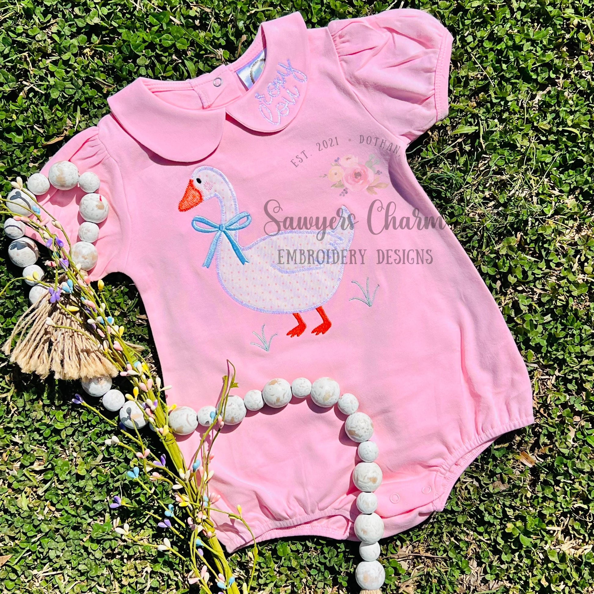 BUNDLE Coquette goose with bow bean & zigzag stitch machine applique embroidery design file, spring farm animal, quick stitch, Easter, duck