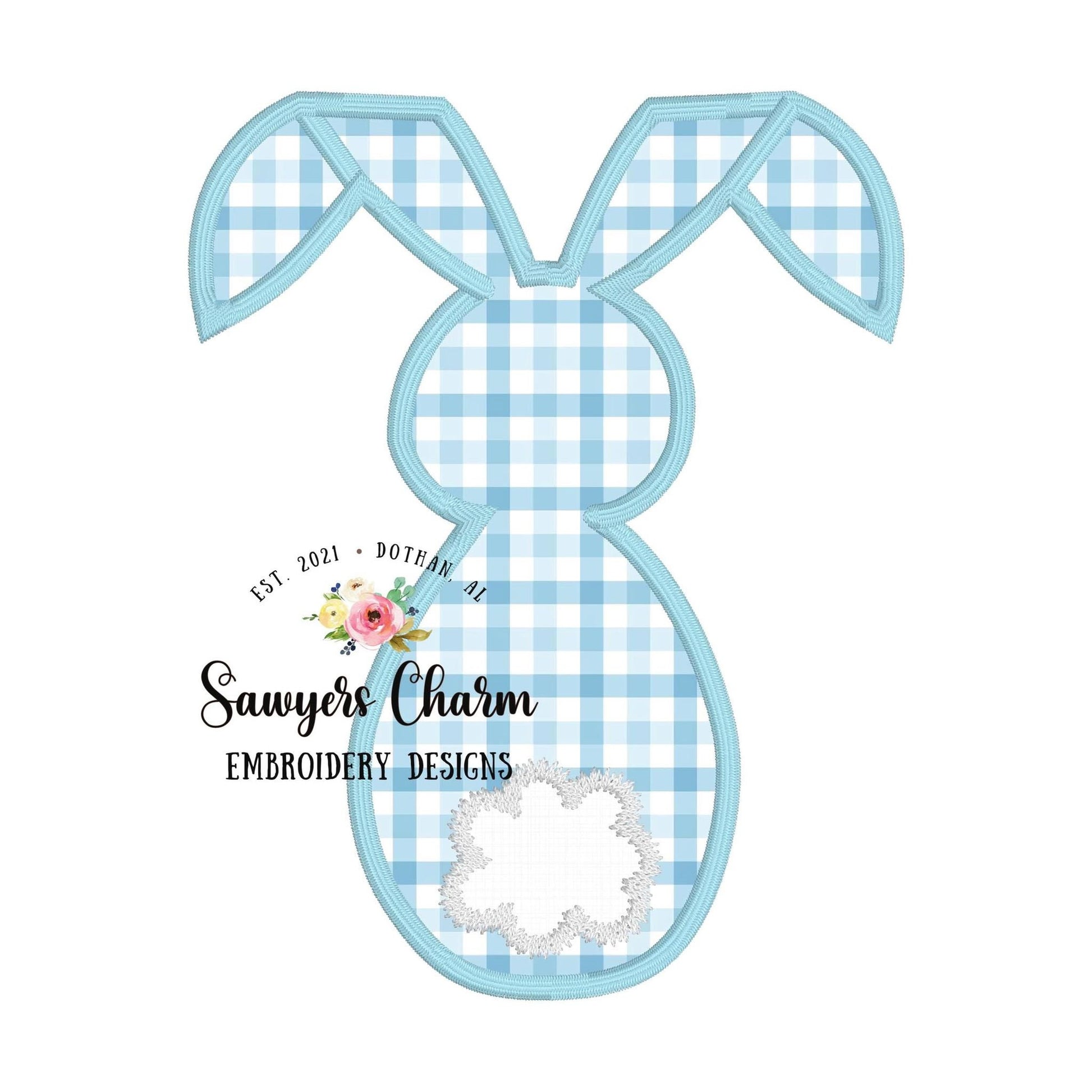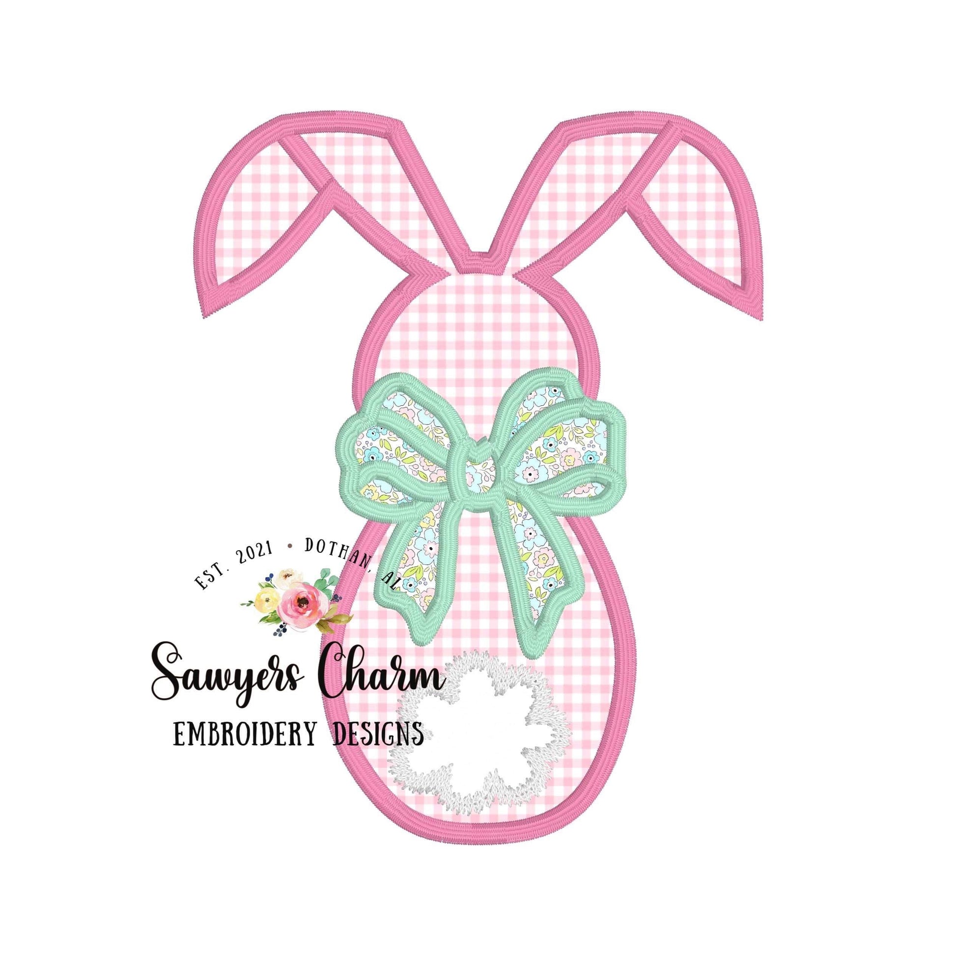 BUNDLE Easter bunny with & without bow satin stitch applique machine embroidery design file, Peter cottontail rabbit, floppy ear bunny tail