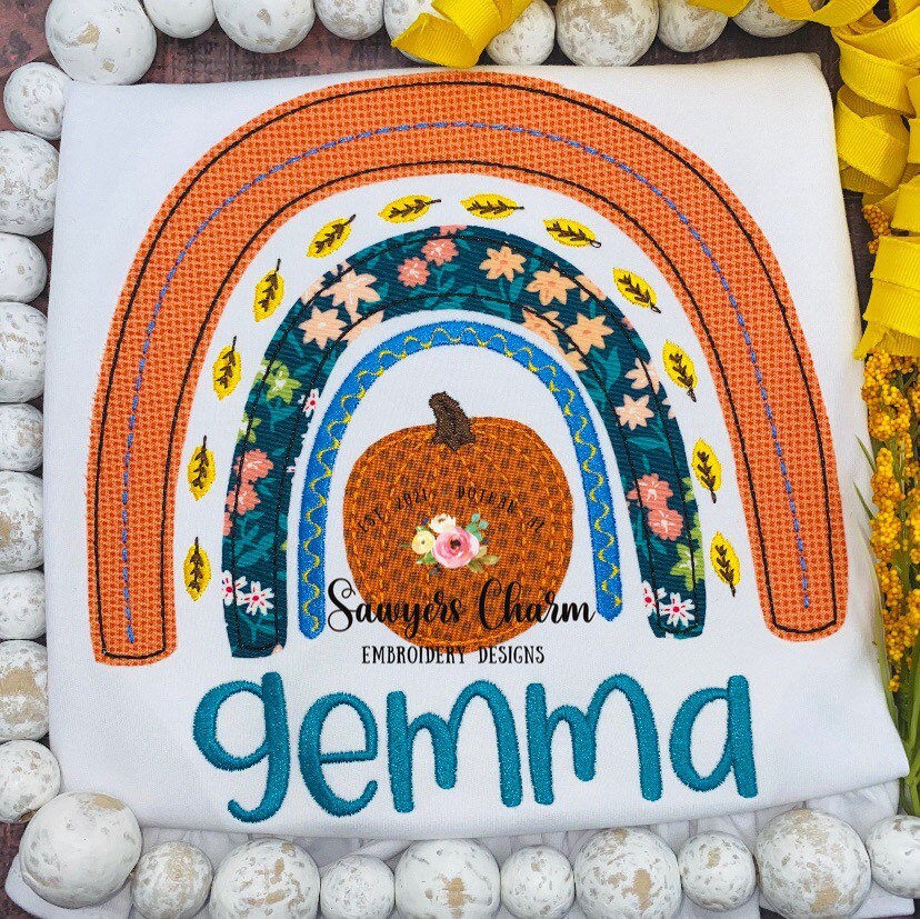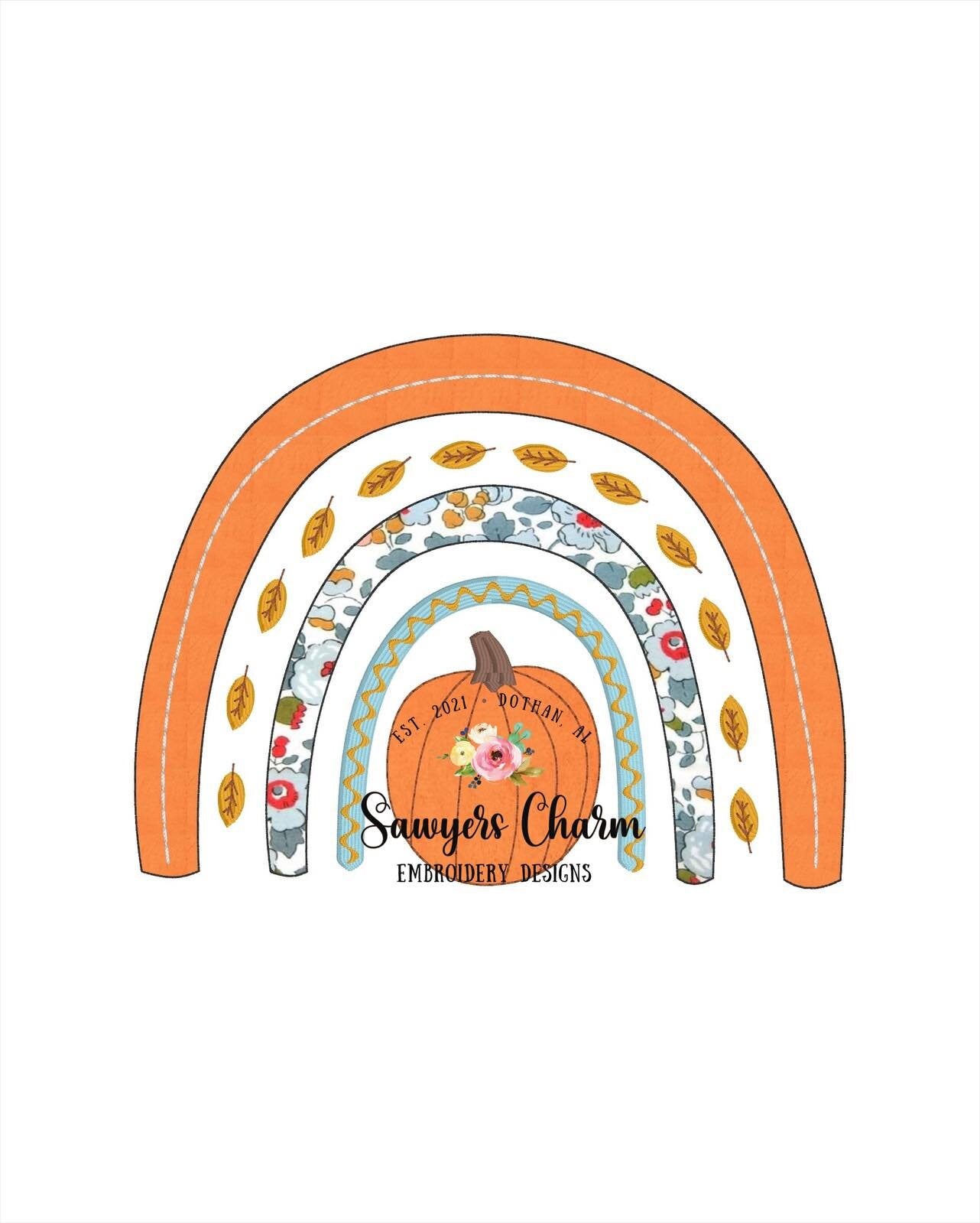 BUNDLE Fall/autumn boho pumpkin rainbow with leaves machine sketch fill design embroidery file AND bean stitch applique design, satin stitch