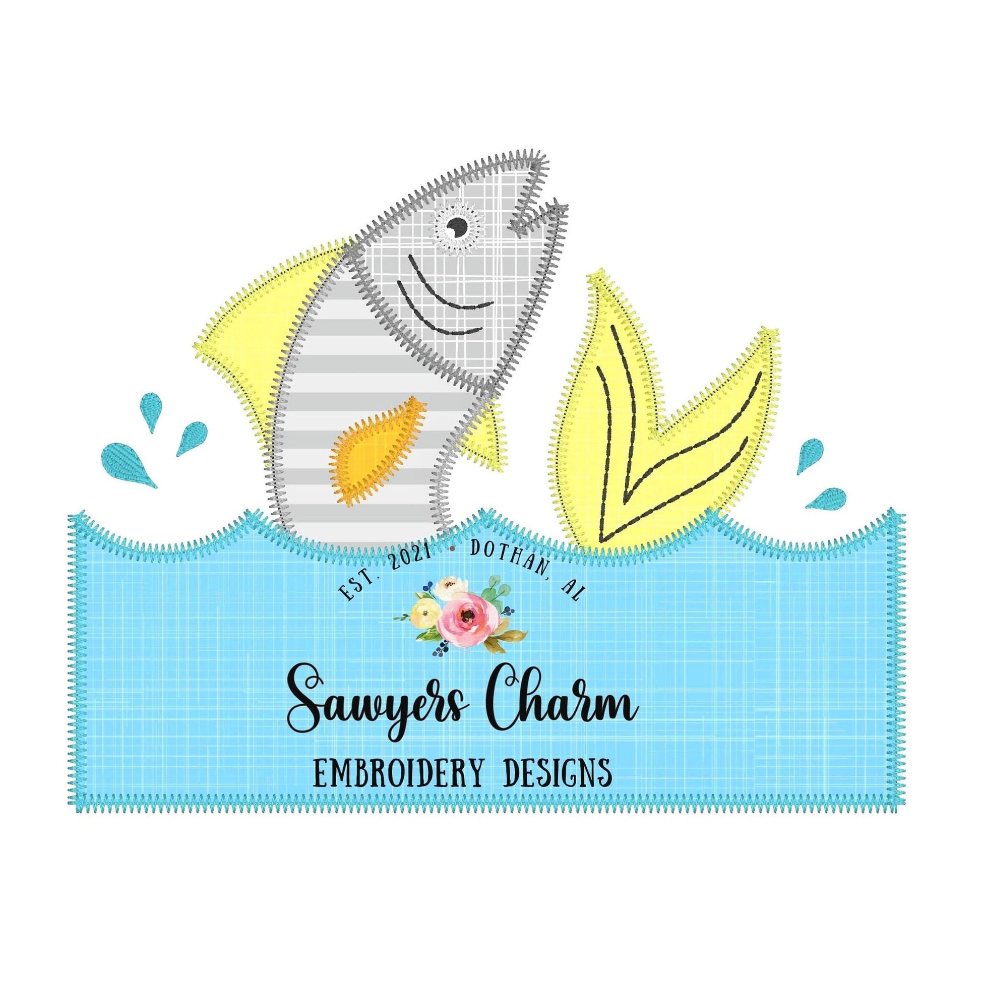 BUNDLE Fish jumping out of water with name plate zig zag & bean stitch machine embroidery design file, outdoors, fishing, bass, quick stitch