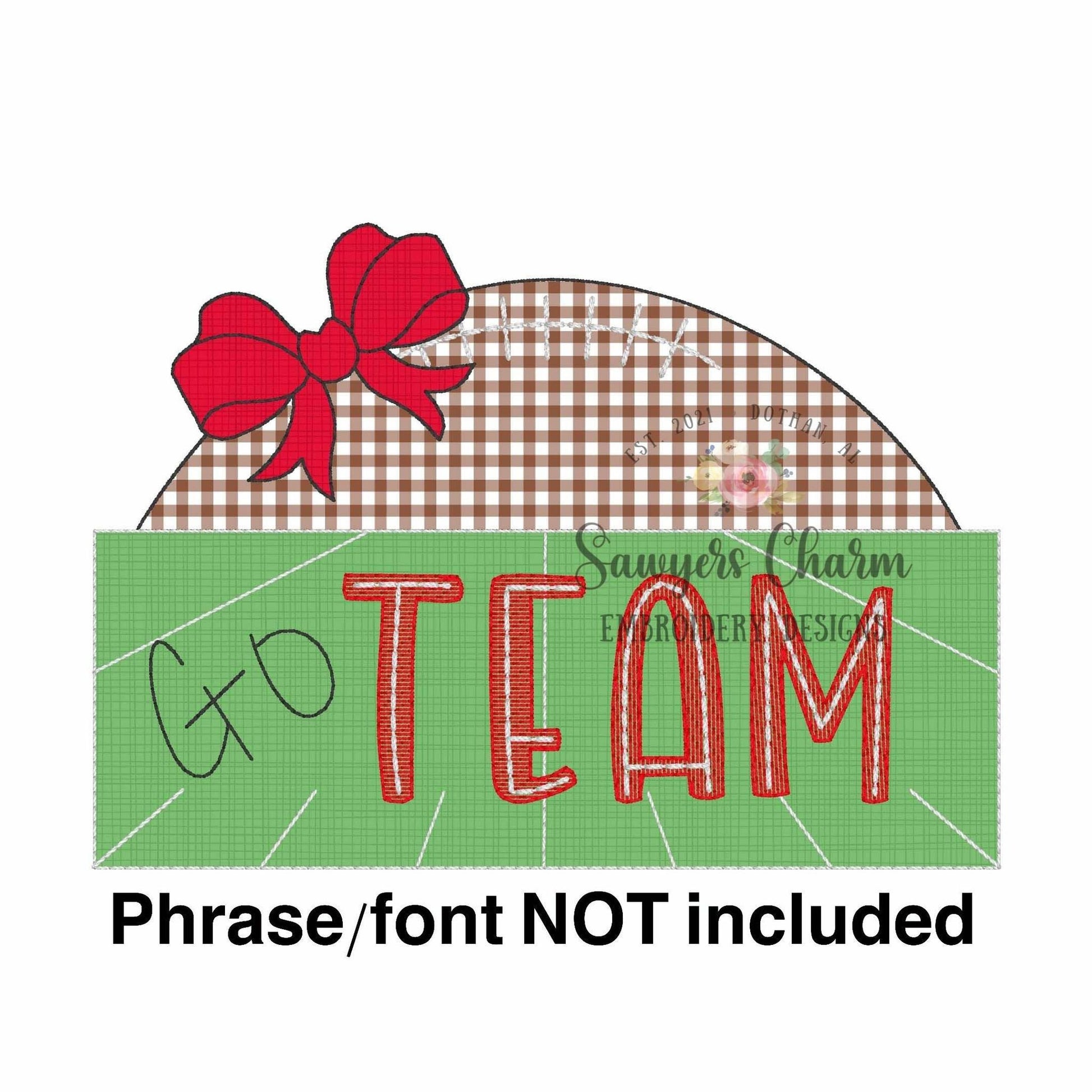 BUNDLE Football field name plate with half football and bow, bean & zig zag stitch machine applique embroidery design, quick stitch, sports