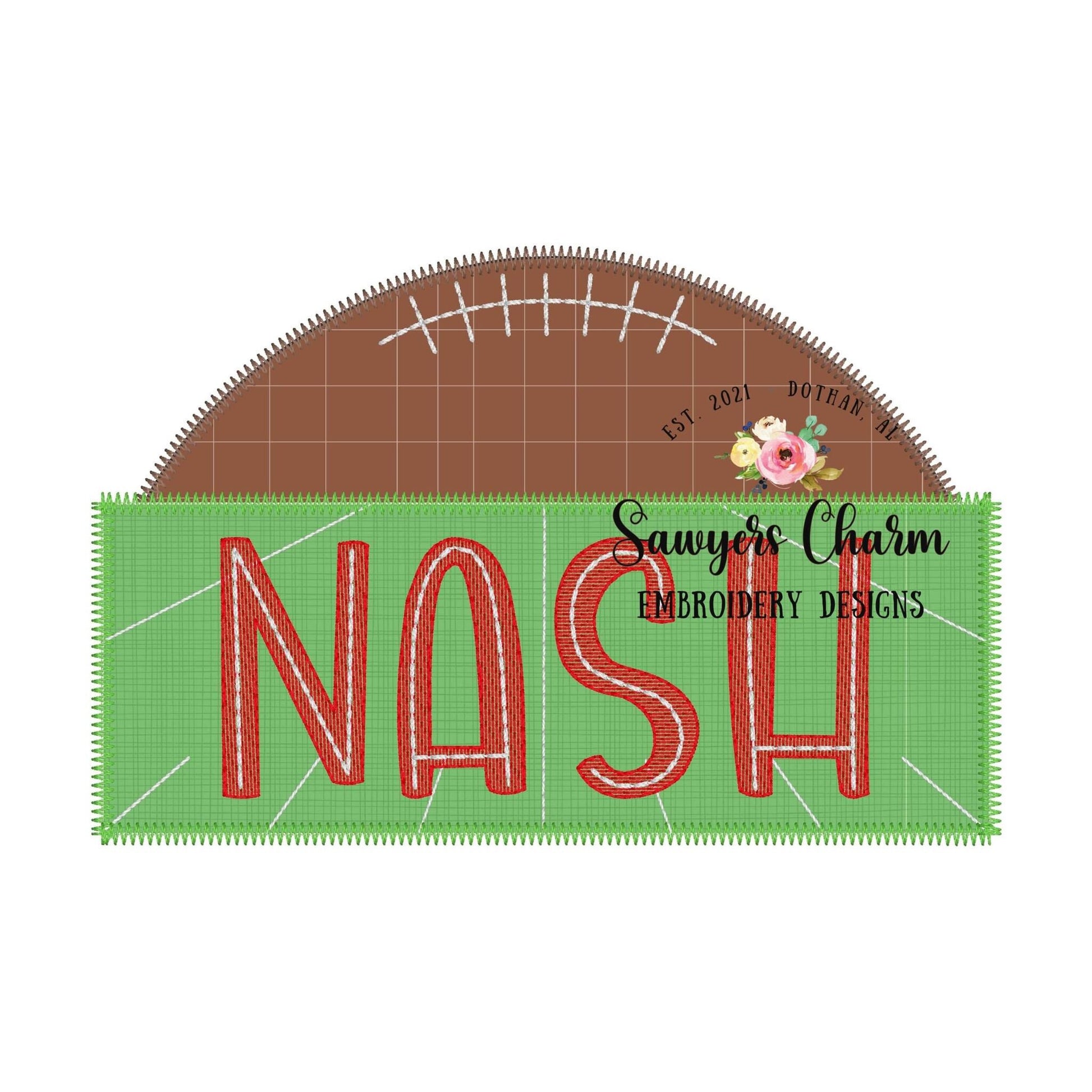 BUNDLE Football field name plate with half football bean & zig zag stitch machine applique embroidery design, quick stitch, fall sports