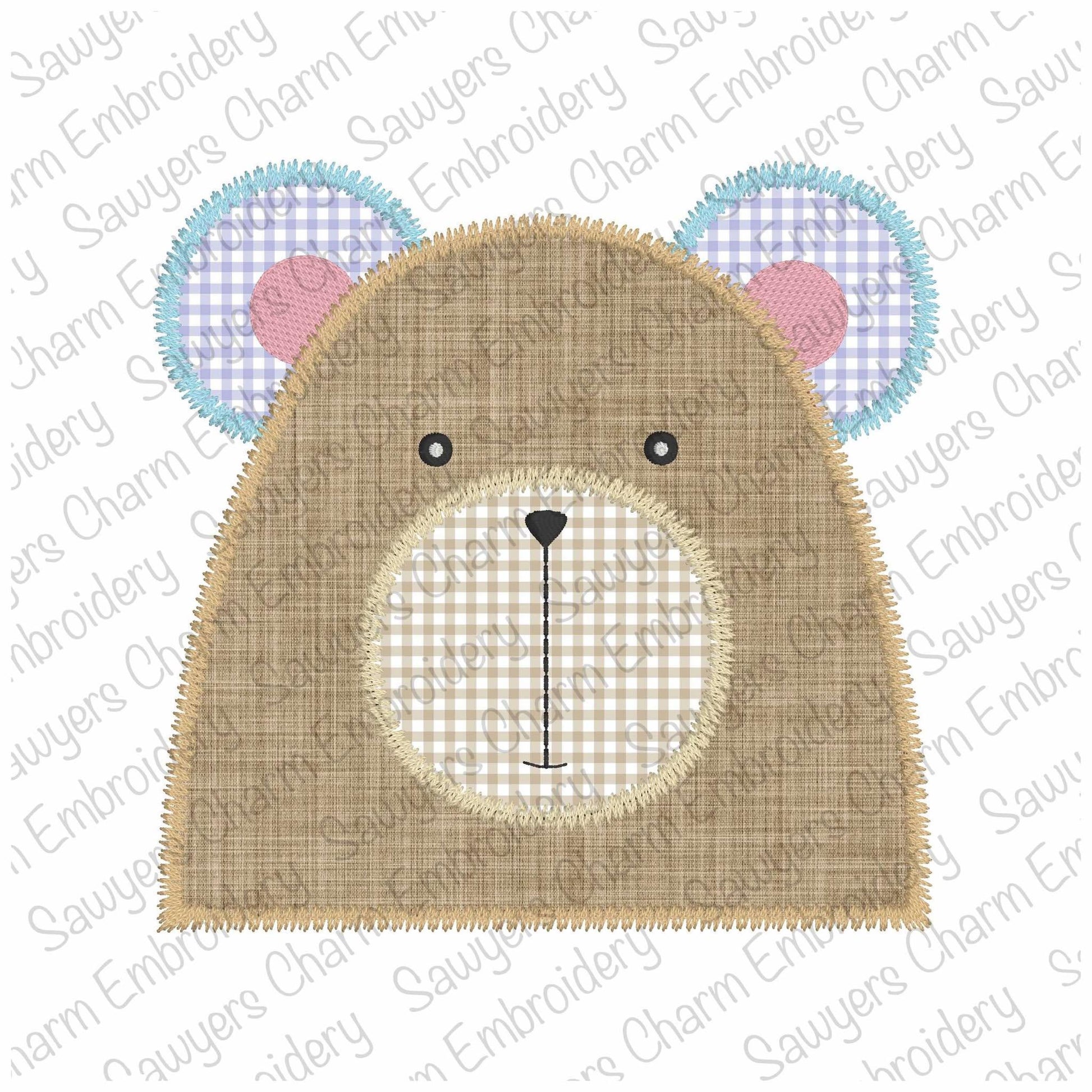 This embroidery file comes in 4 sizes.....4x4, 5x5, 6x6, and 7x7. You are purchasing the bundle that includes both the boy and girl versions of the fuzzy bear applique. :) This comes with and without the bow. The zig zag stitch is meant to have a "fuzzy" look. These are so sweet!