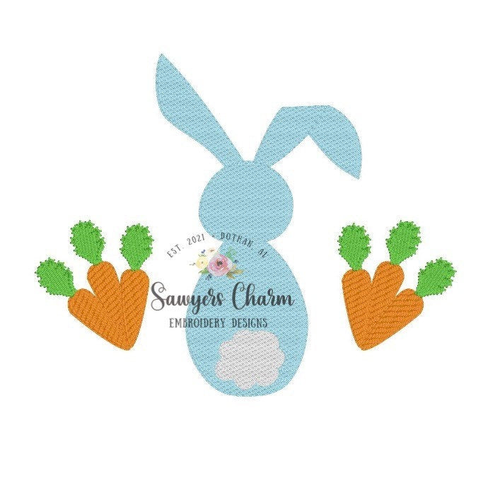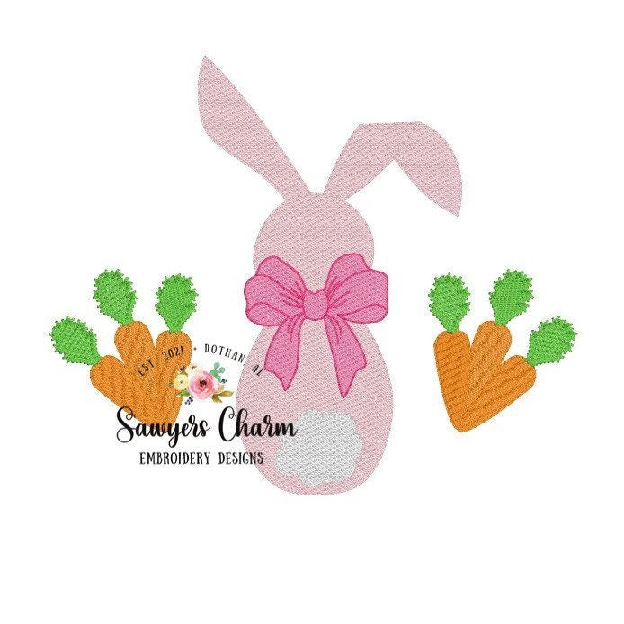 BUNDLE Girl and boy Easter bunny carrots trio sketch machine embroidery design file, quick stitch, with and without bows
