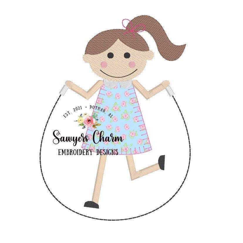 You are purchasing the bundle of designs, for a total of 5 different designs! :) You are getting the 3 girls jumping rope together, the 2 girls jumping rope together, and each girl individually jumping rope. These are sketch stitch faces/hair/bodies with blanket stitch dresses.