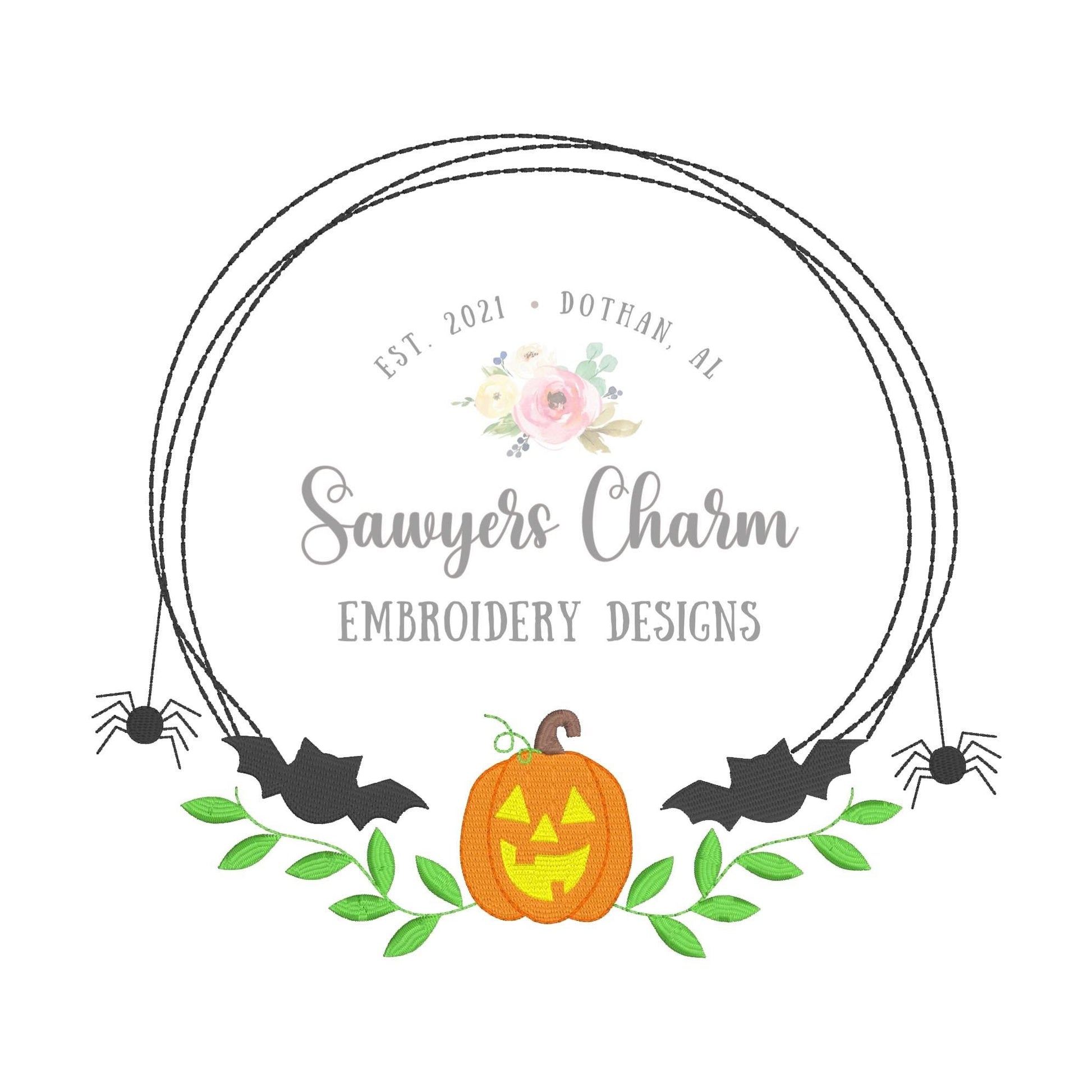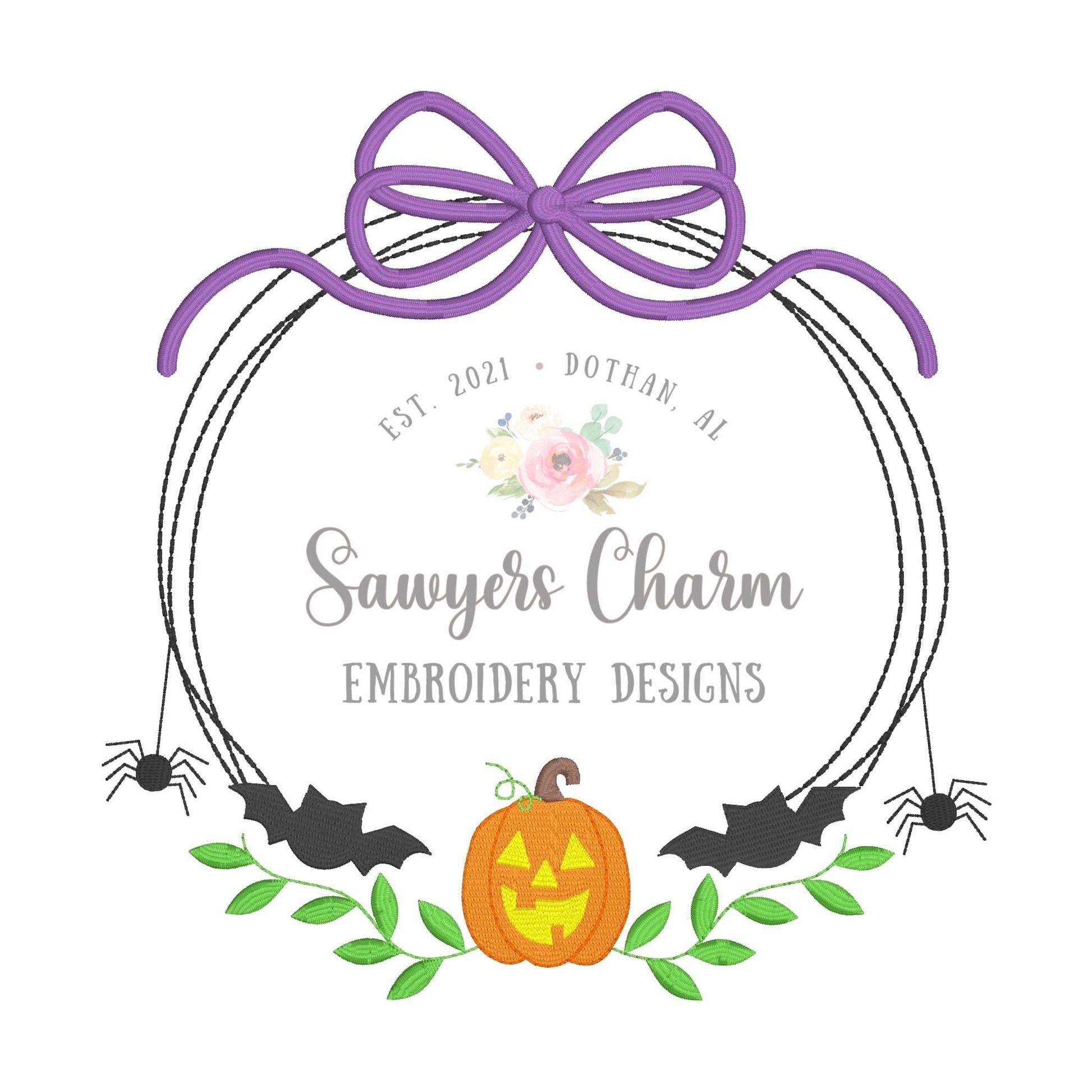 BUNDLE Halloween jackolantern bats spider scribble circle monogram frame with & without bows machine embroidery design file, fall pumpkin