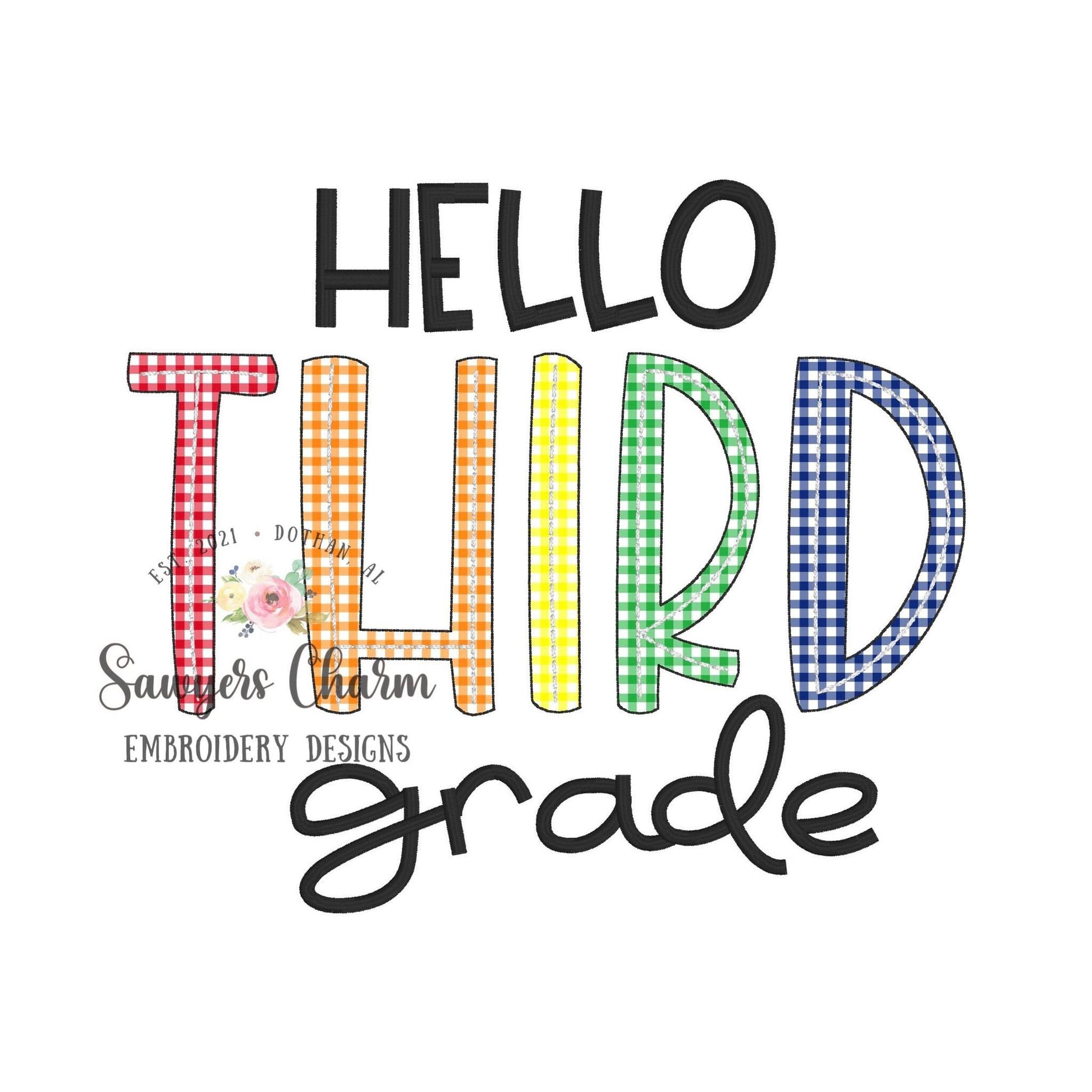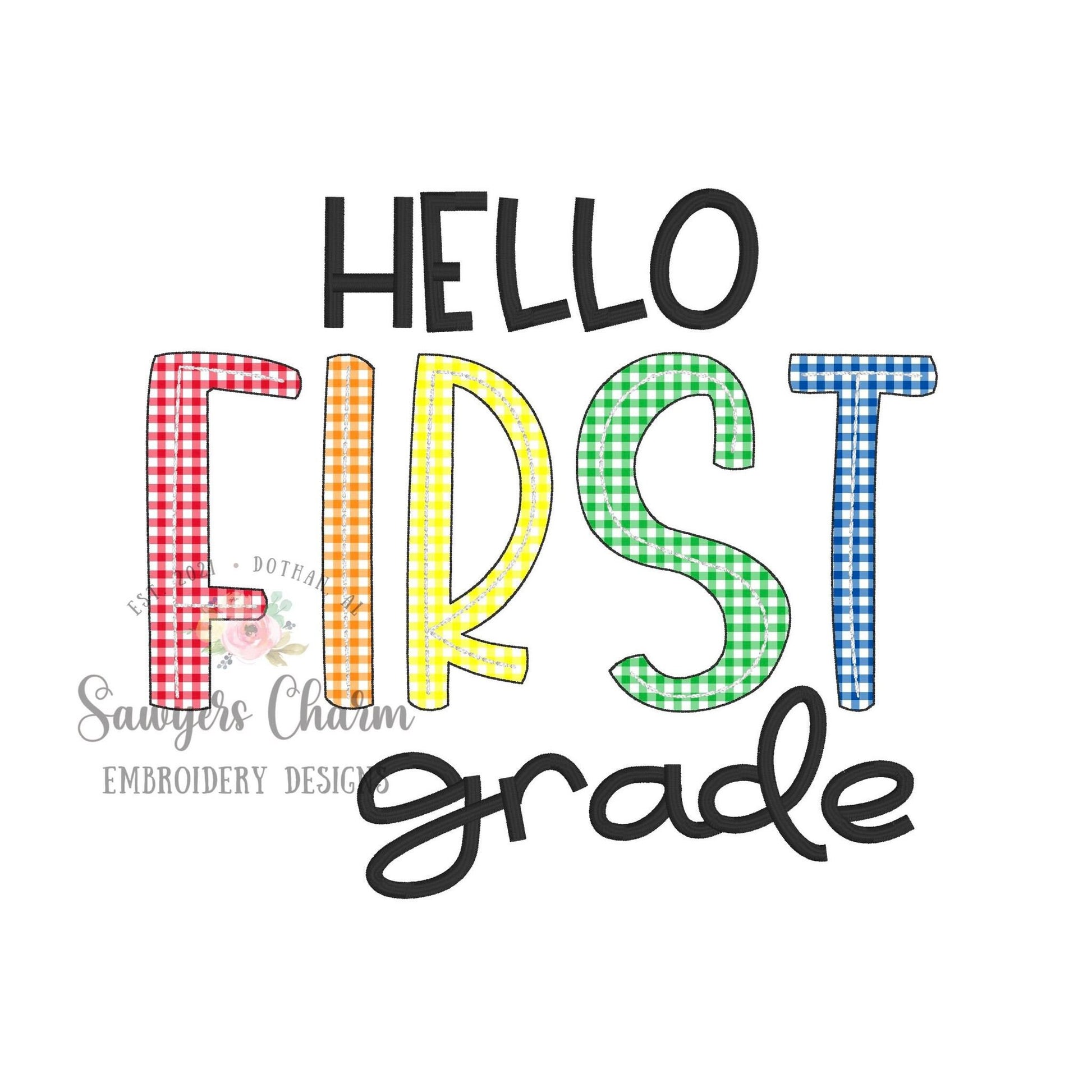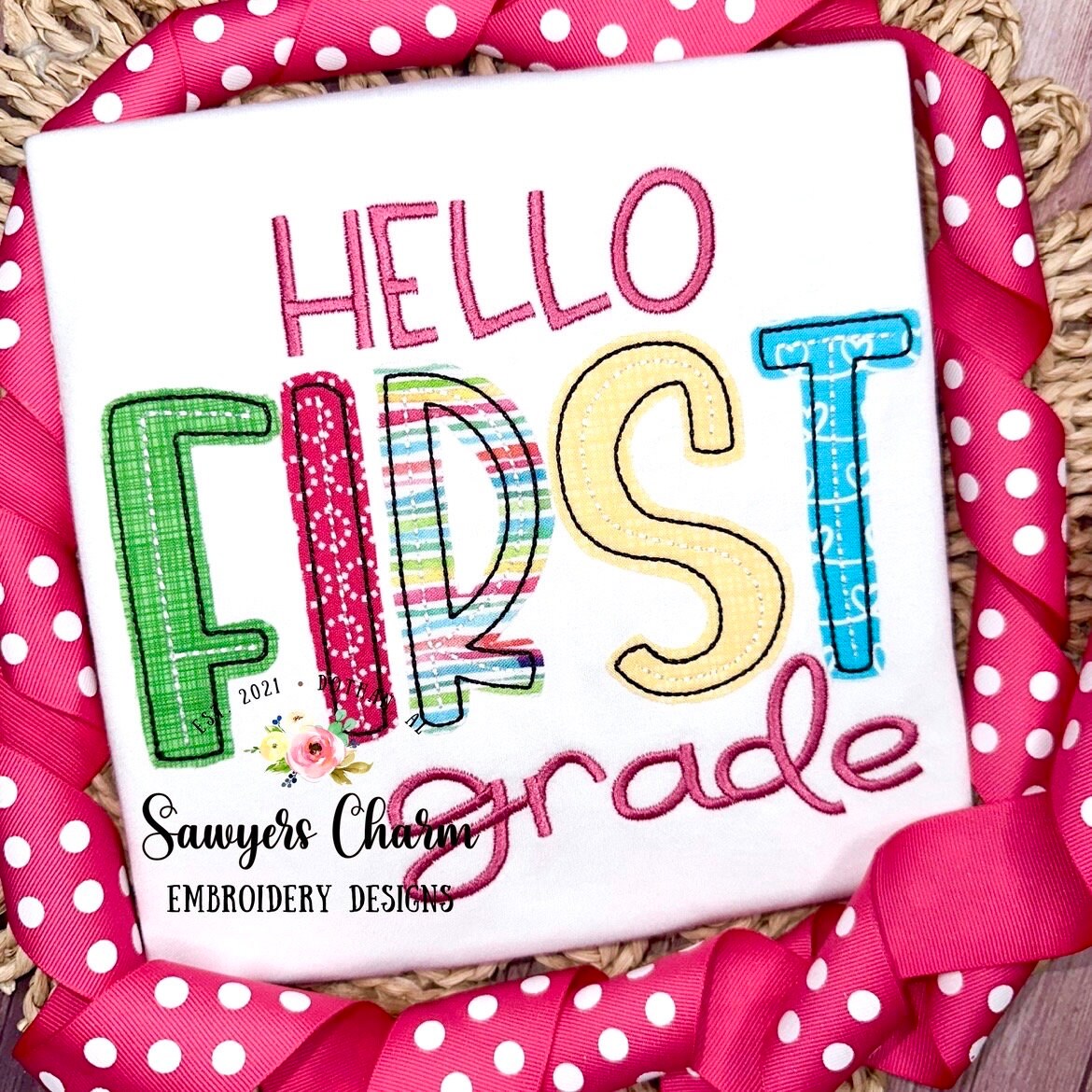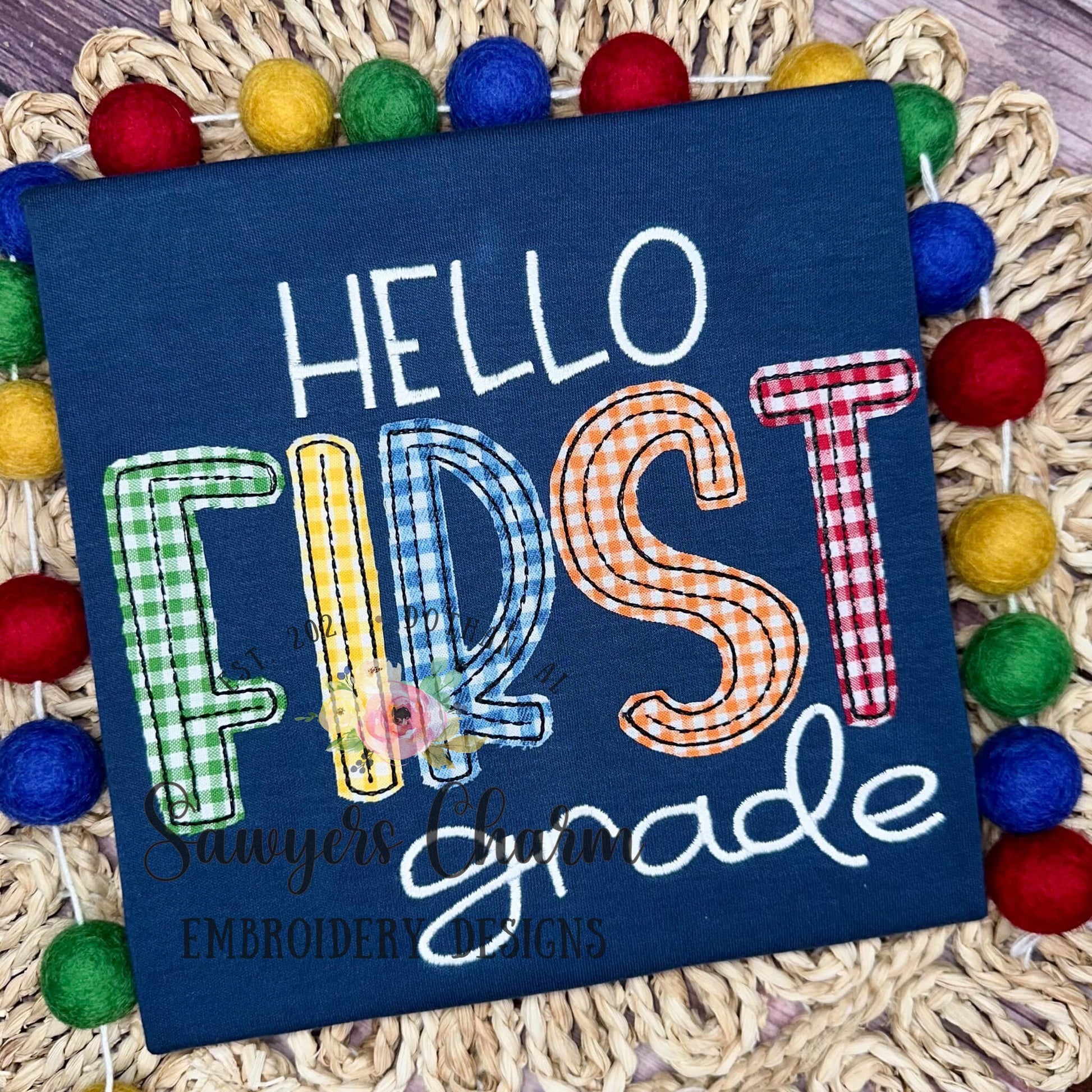 BUNDLE Hello Pre-K, Kindergarten, First, Second, Third, Fourth, Fifth grade bean stitch applique embroidery design file, satin stitch