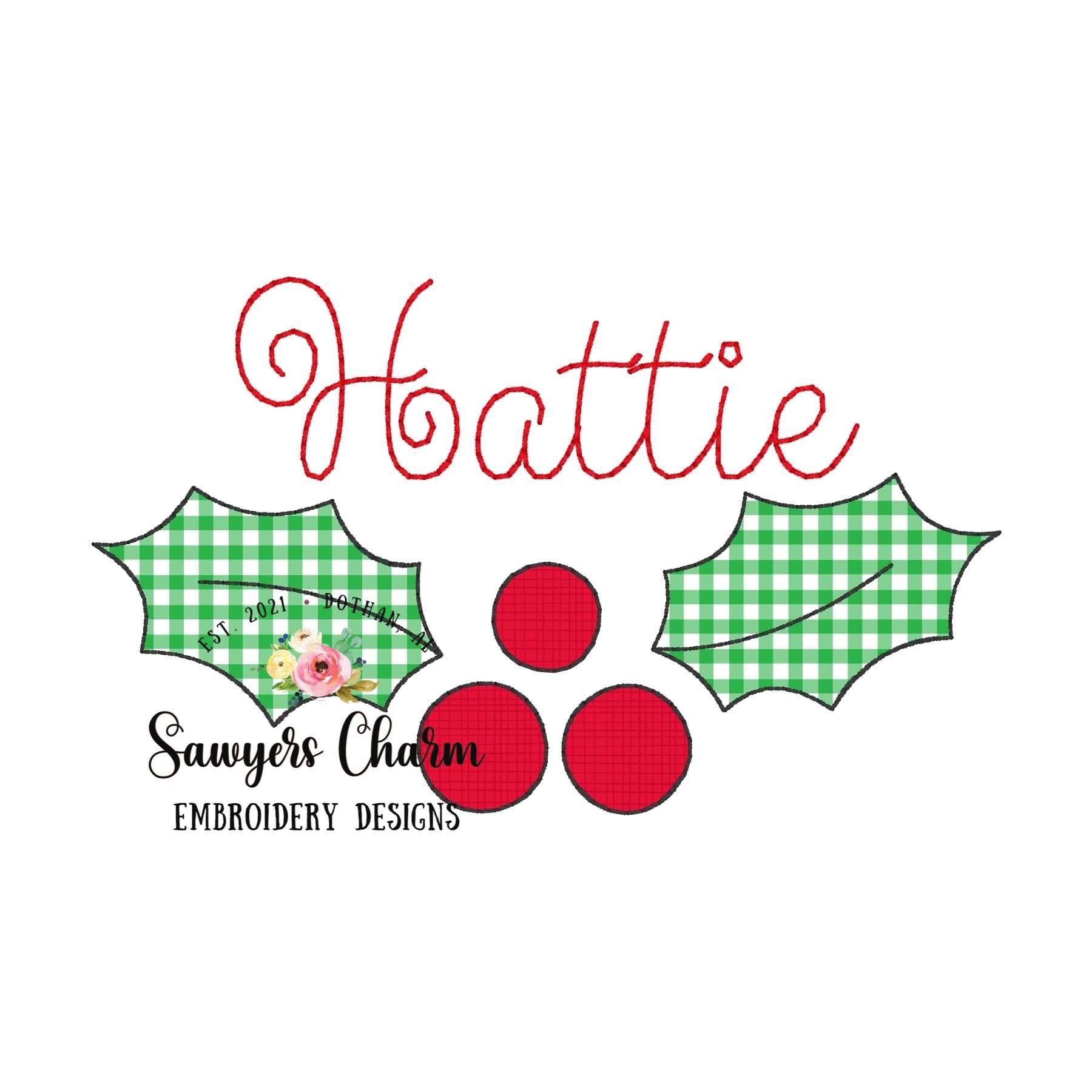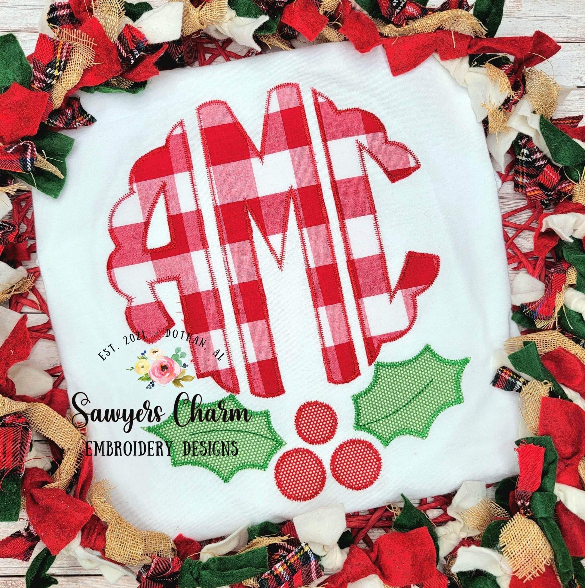 BUNDLE Holly berry bean stitch & zig zag machine applique embroidery design file, quick stitch, Christmas, happy holidays, monogram frame