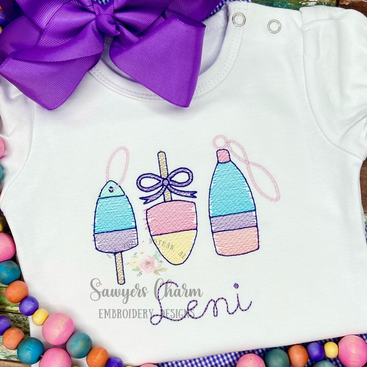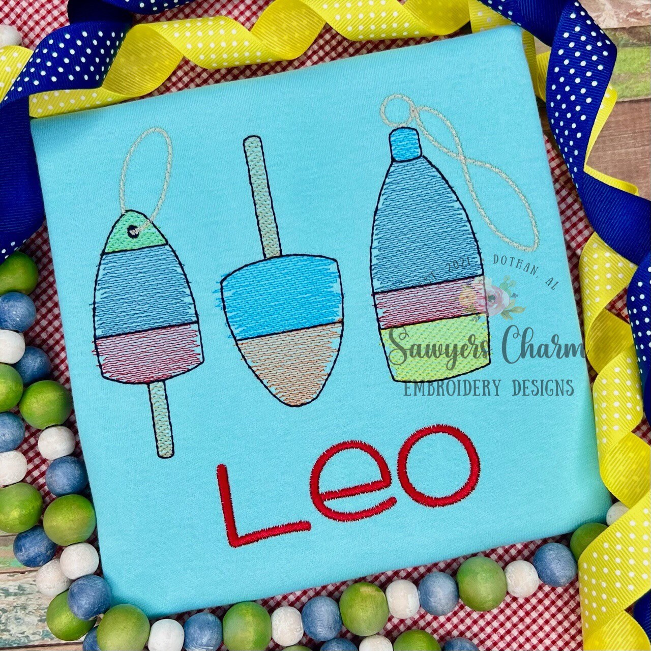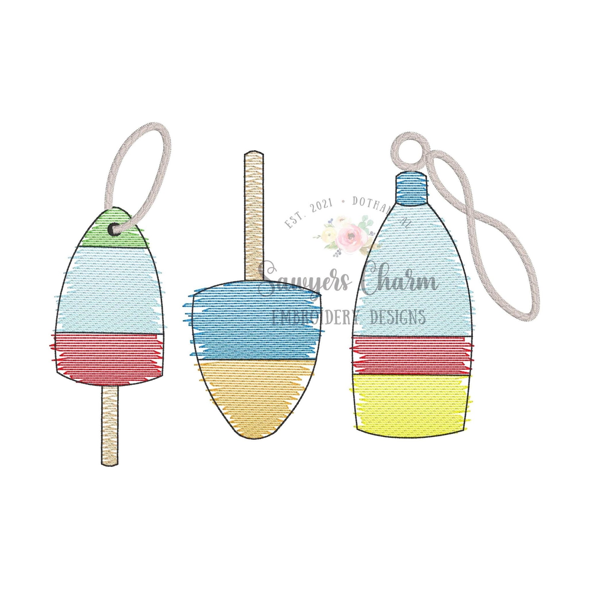 BUNDLE Lobster buoys with & without bow watercolor sketch stitch machine embroidery design file, bean stitch, fishing, nautical, ocean beach
