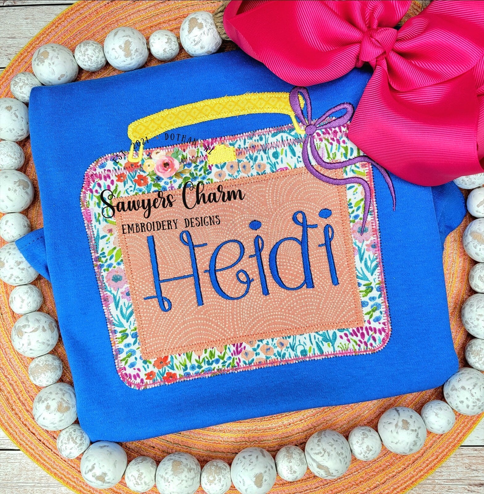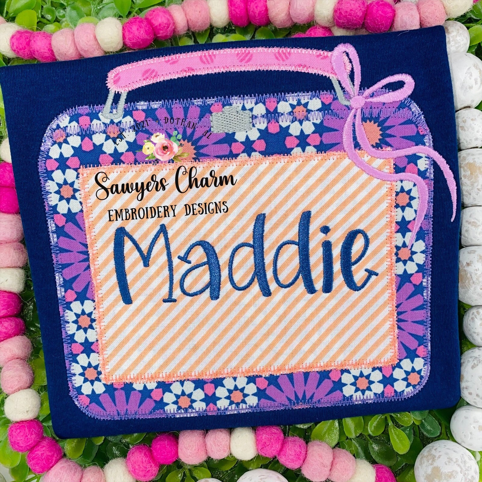 BUNDLE Lunchbox with and without bow zig zag machine embroidery design file, quick stitch, perfect for monograms or names, back to school