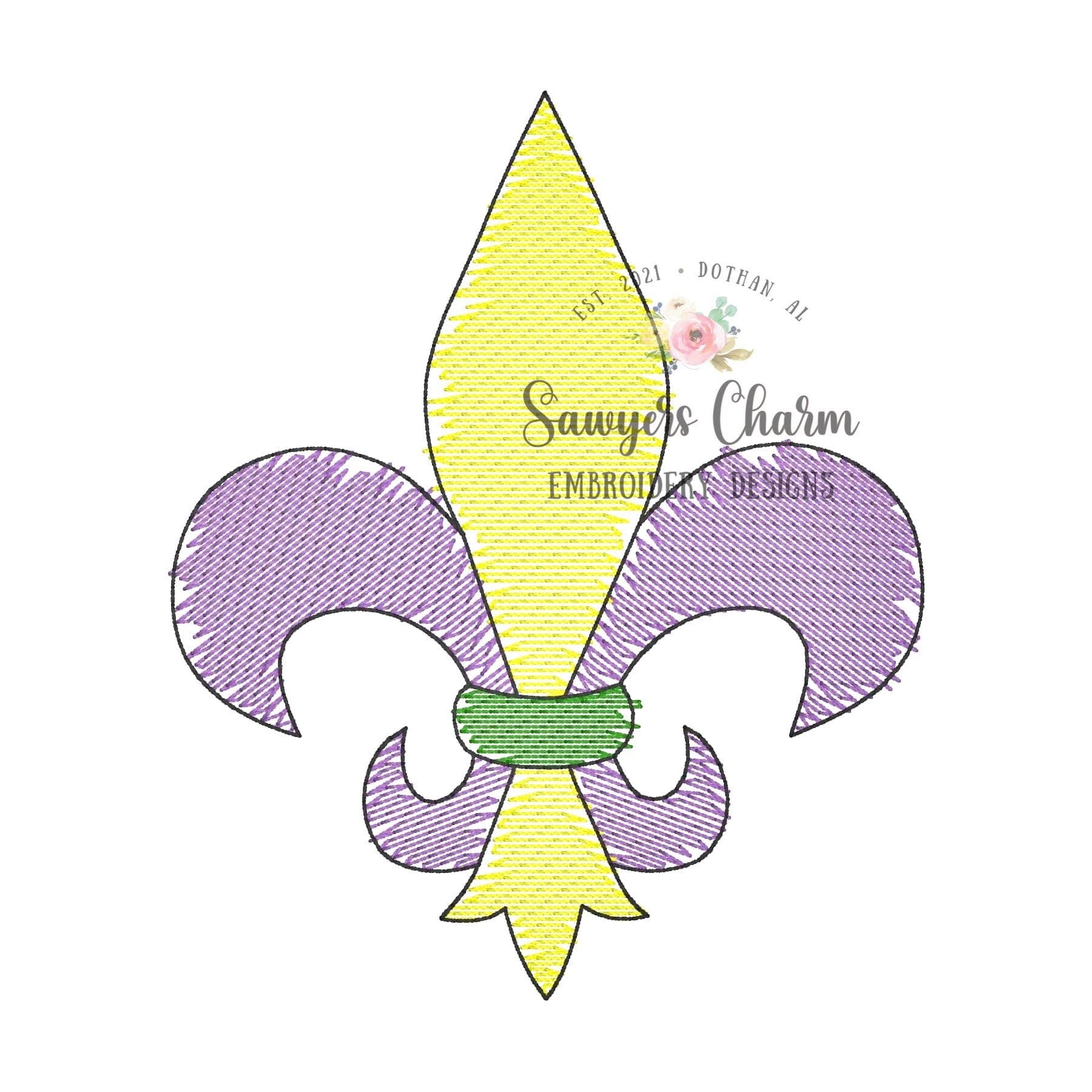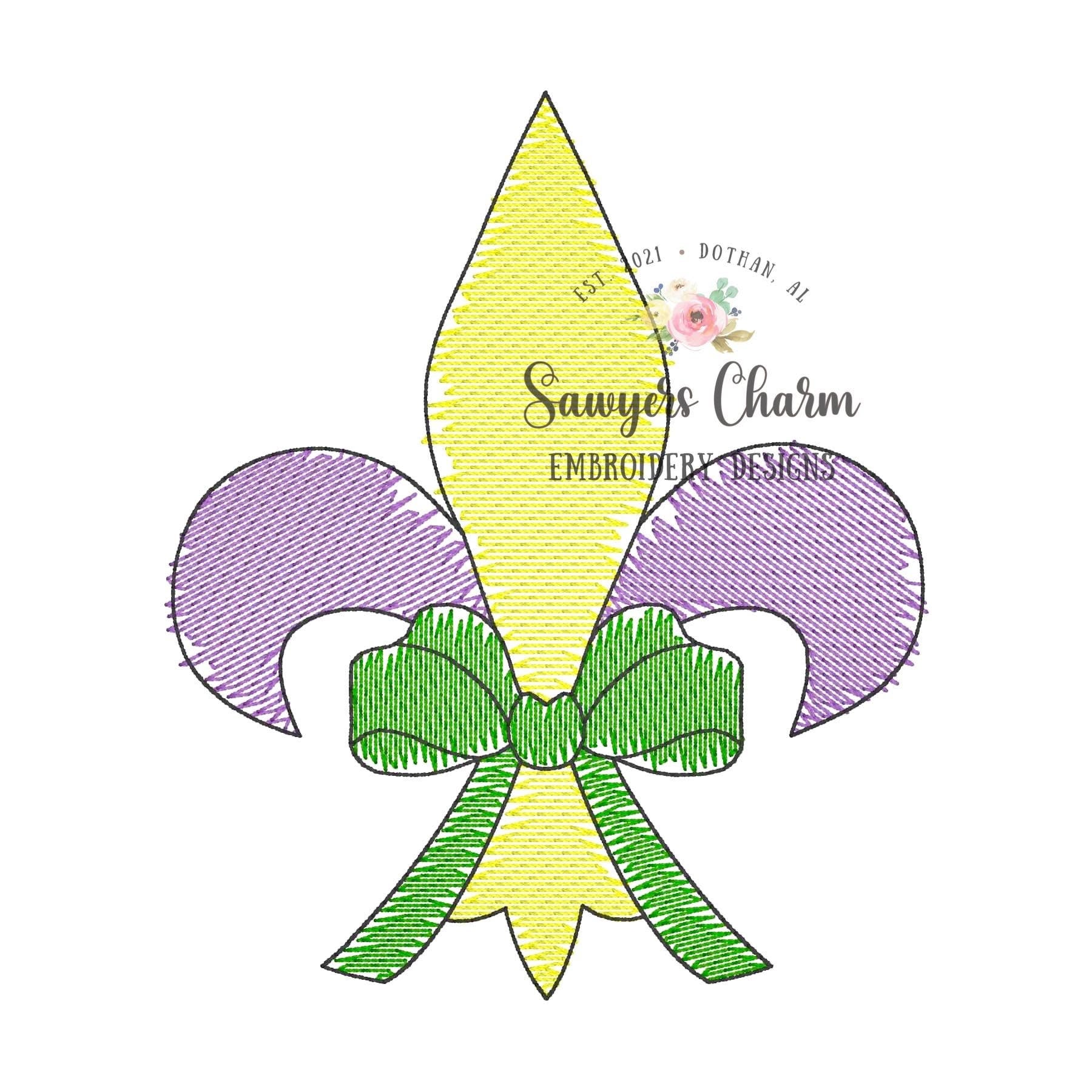BUNDLE Mardi gras fleur de lis "watercolor" sketch stitch machine embroidery design file, with and without bow, quick stitch, bean stitch