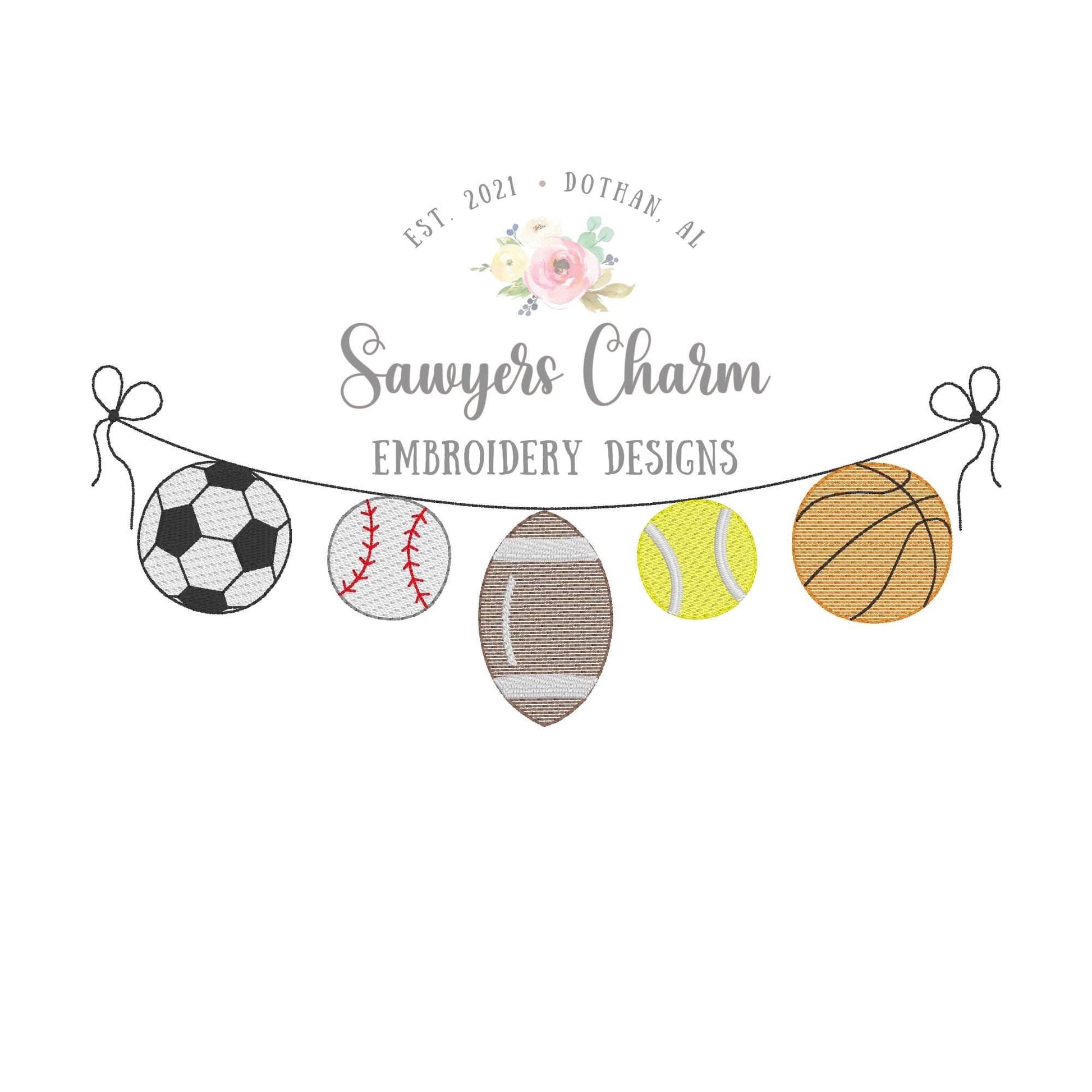 BUNDLE Multi Sports balls bunting banner sketch stitch machine embroidery design file, tennis, football, basketball, baseball, soccer