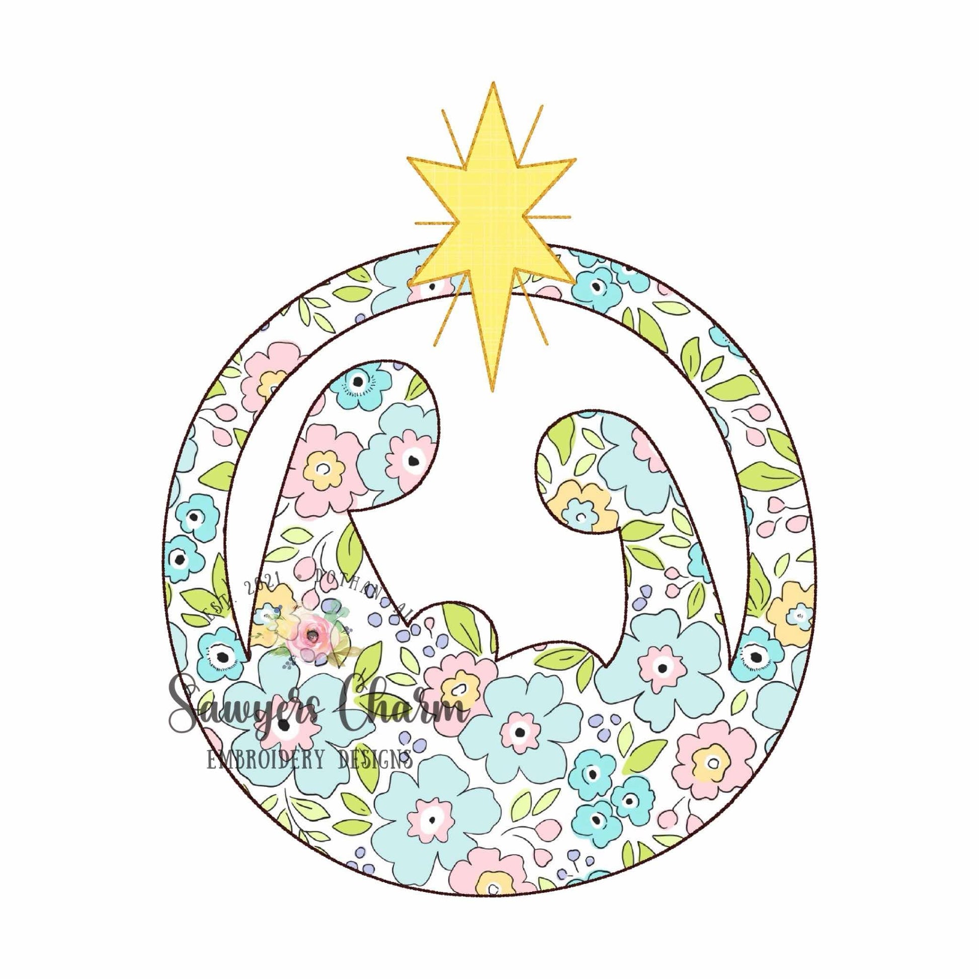 BUNDLE Nativity scene machine applique embroidery design, Bethlehem star, bean & zigzag stitch, Baby Jesus, Mary and Joseph, Merry Christmas