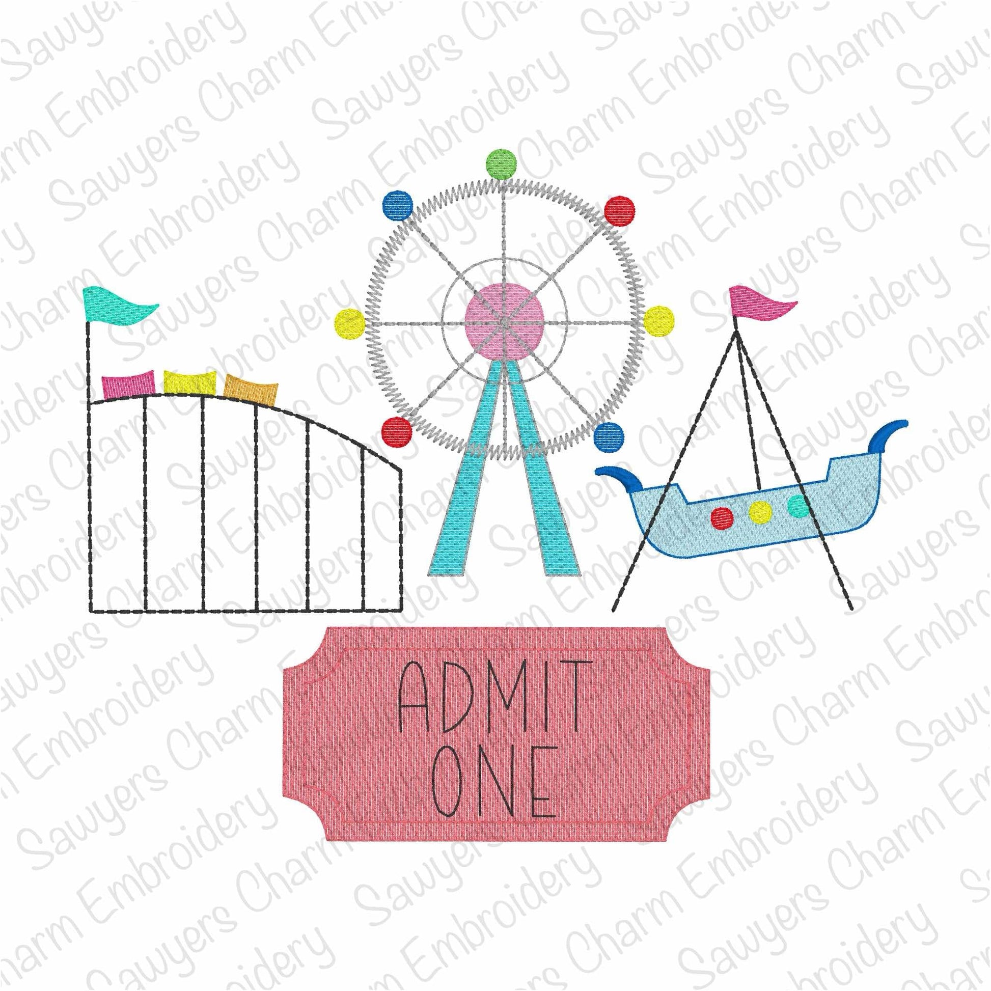 BUNDLE of individual fair rides & food sketch stitch machine embroidery design files, roller coaster, ferris wheel, roller coaster, lemonade