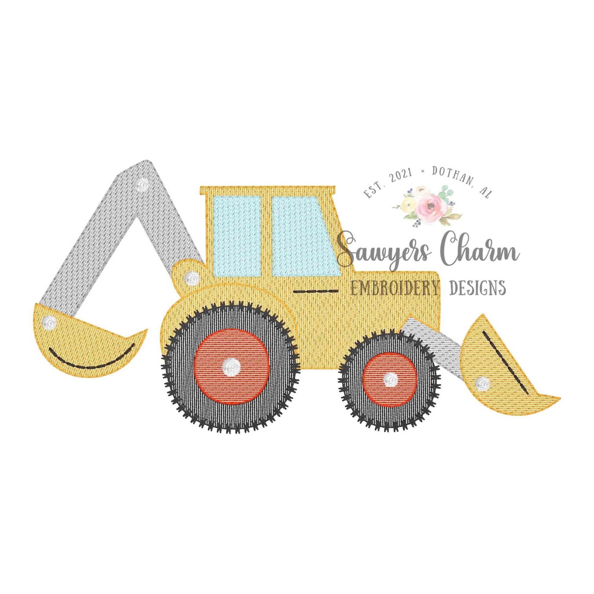 This embroidery file comes in 5 sizes....4x4, 5x4, 6x5, 5x7, and 8x8. :) This is a light fill sketch stitch design, not a dense fill stitch. You are purchasing the bundle that includes 6 construction type vehicles.