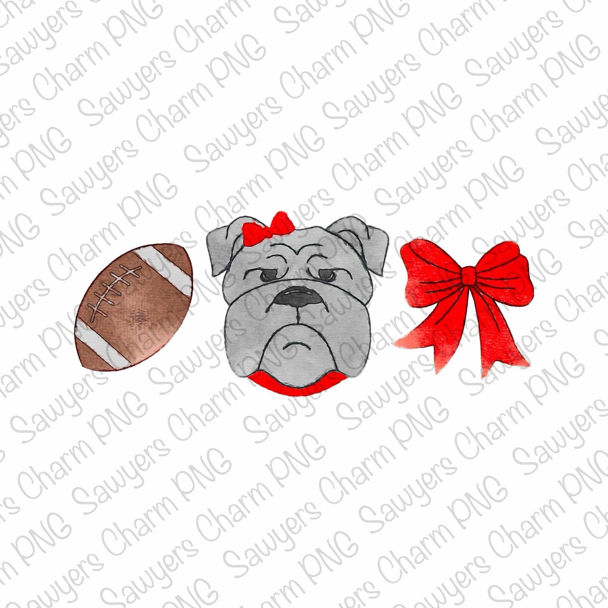 PNG watercolor Football bulldog mascot coquette bow trio Printable file/Sublimation/Heat Transfer Design/Digital Clipart, cheerleading fan
