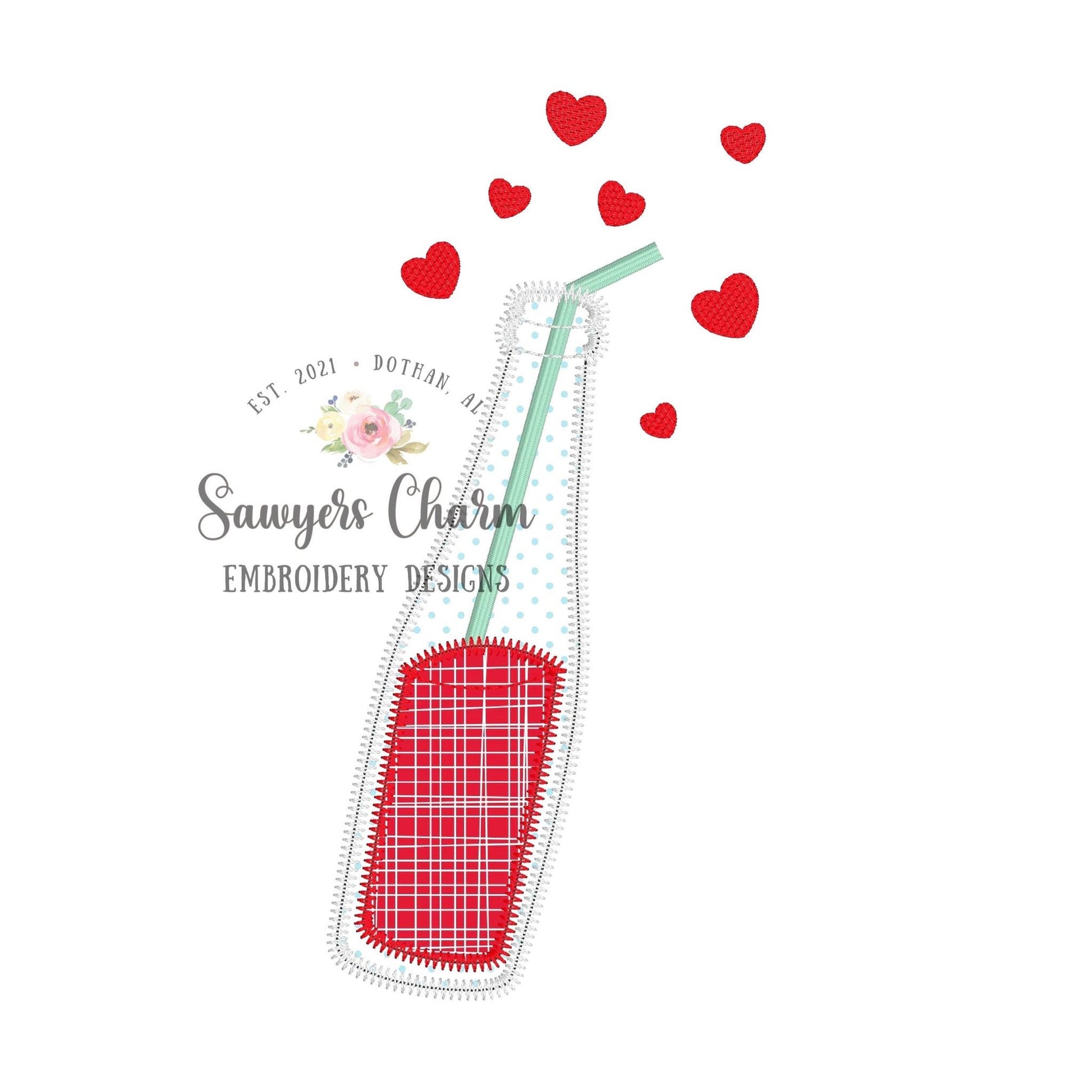 BUNDLE Soda bottle/pop with heart fizz bean & zigzag stitch applique machine embroidery design file, love Valentine's Day make my heart pop