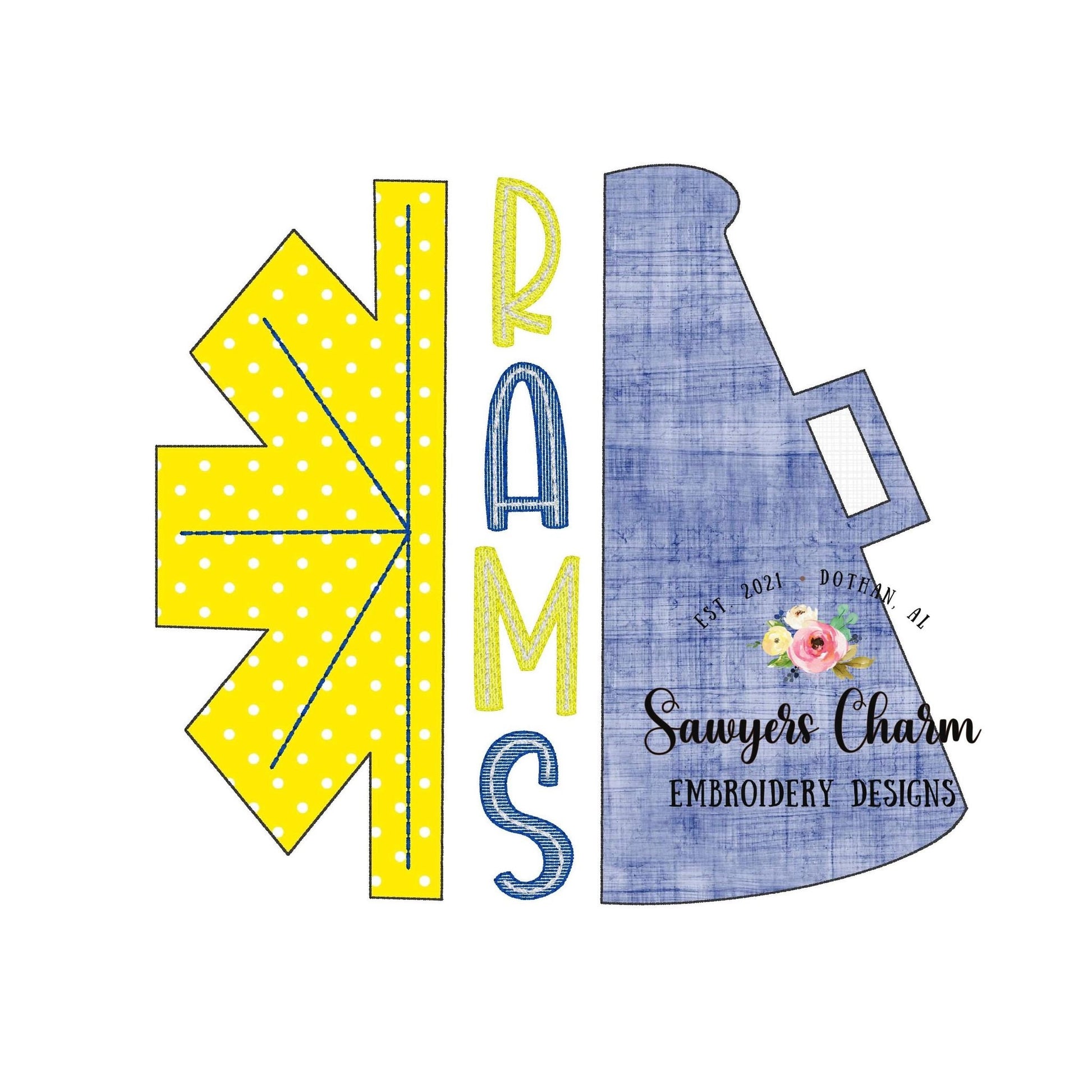 BUNDLE Split megaphone/pom pom applique, bean & zig zag stitch, machine embroidery design file, football sports cheerleading, monogram
