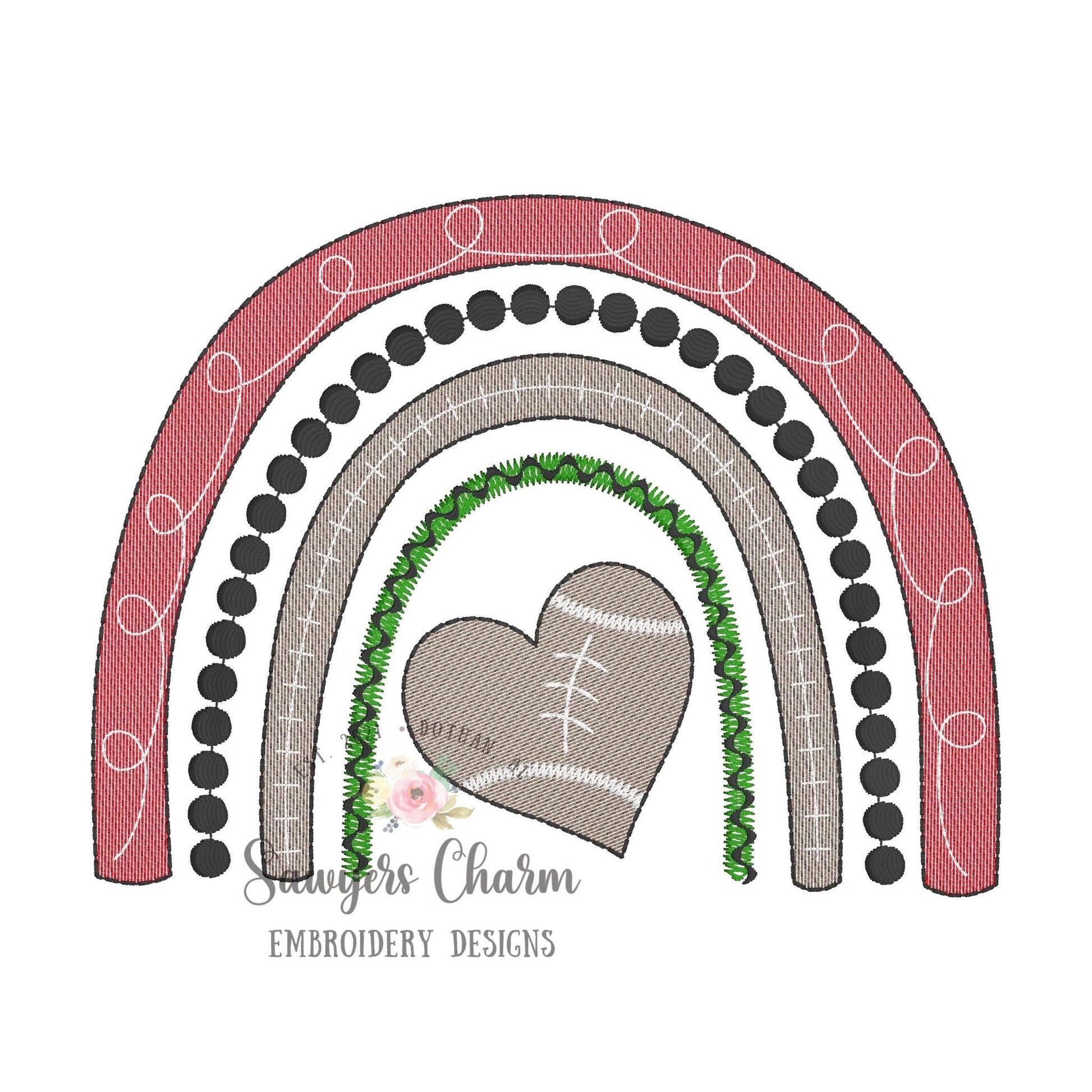 This embroidery file comes in 3 sizes....5x4, 5x7, and 8x8. You are purchasing the bundle of boho style sports rainbows. :) These are precious and perfect for those girls supporting their teams! ;) You will be getting the football, baseball, basketball, soccer, and golf version of these rainbows in this listing. The sports balls are shaped like hearts.