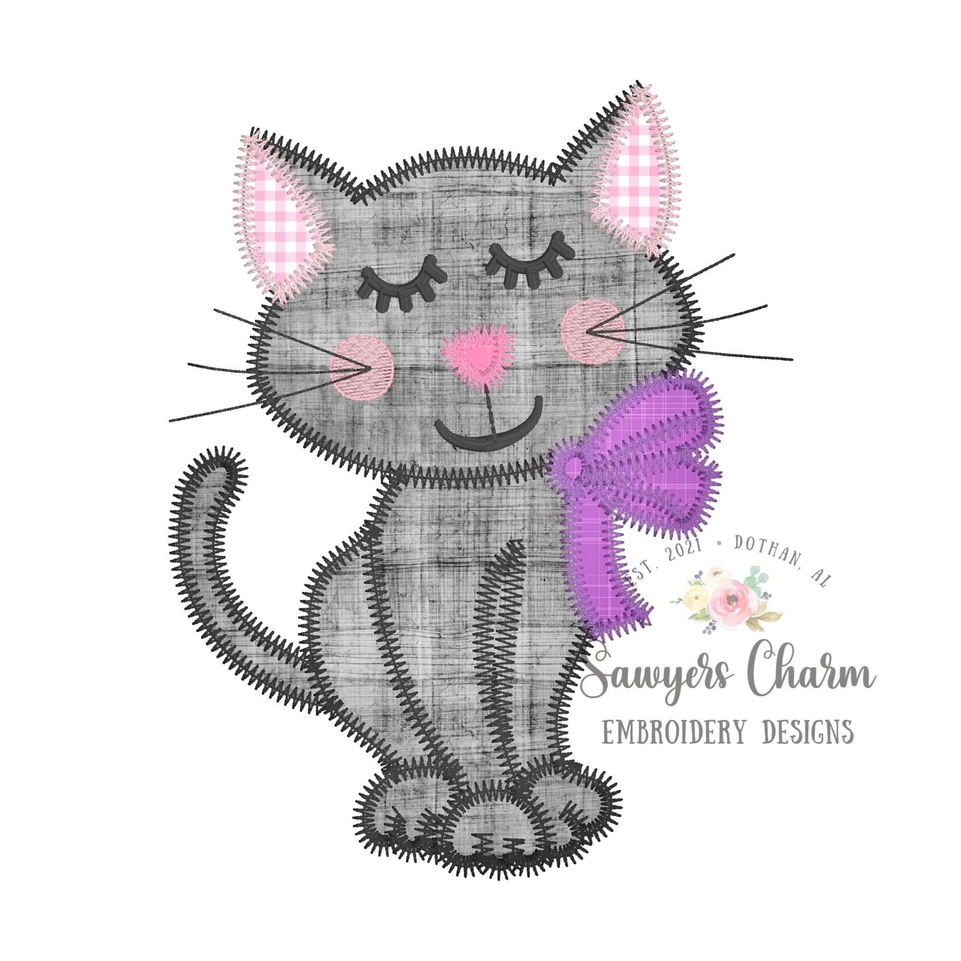 BUNDLE Sweet kitty cat with bow zig zag & bean stitch applique machine embroidery design file, fall halloween spooky season, black cat