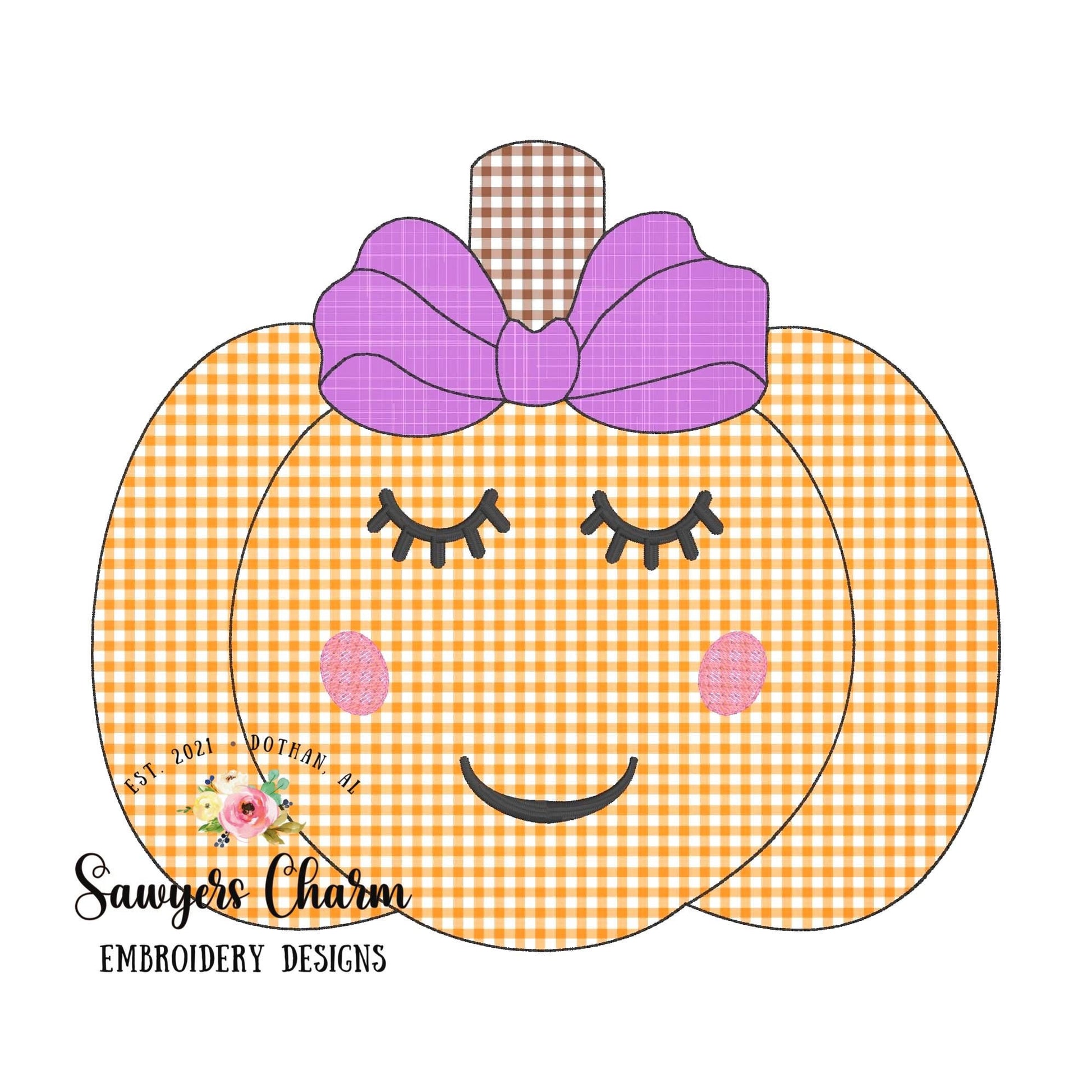 BUNDLE Sweet Pumpkin with bow zig zag & bean stitch applique machine embroidery design file, fall, halloween, spooky season, jackolantern