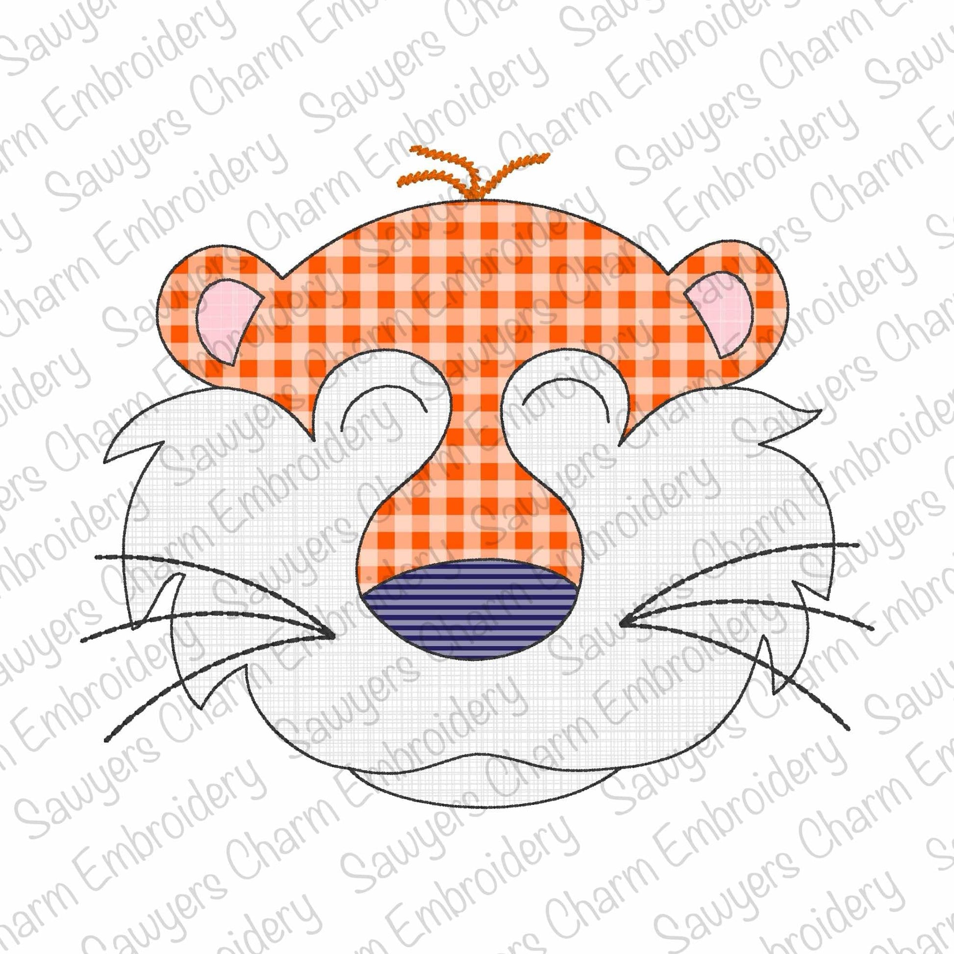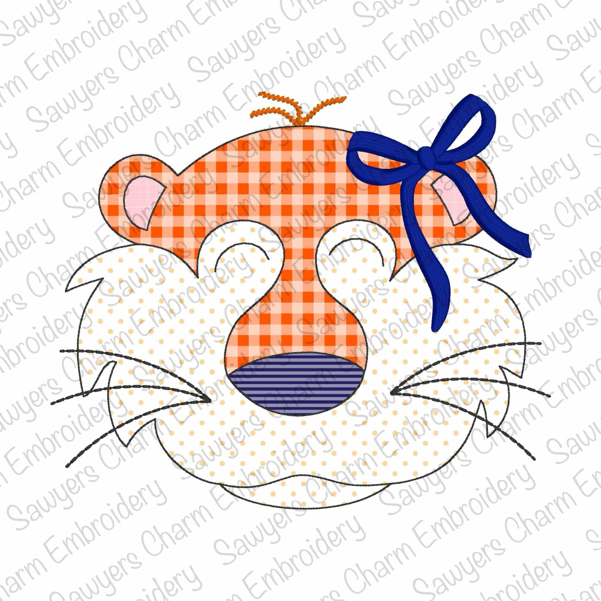 BUNDLE Tiger mascot, with/without coquette bow, bean stitch applique, machine embroidery design, zoo animal, sports, quick stitch, football