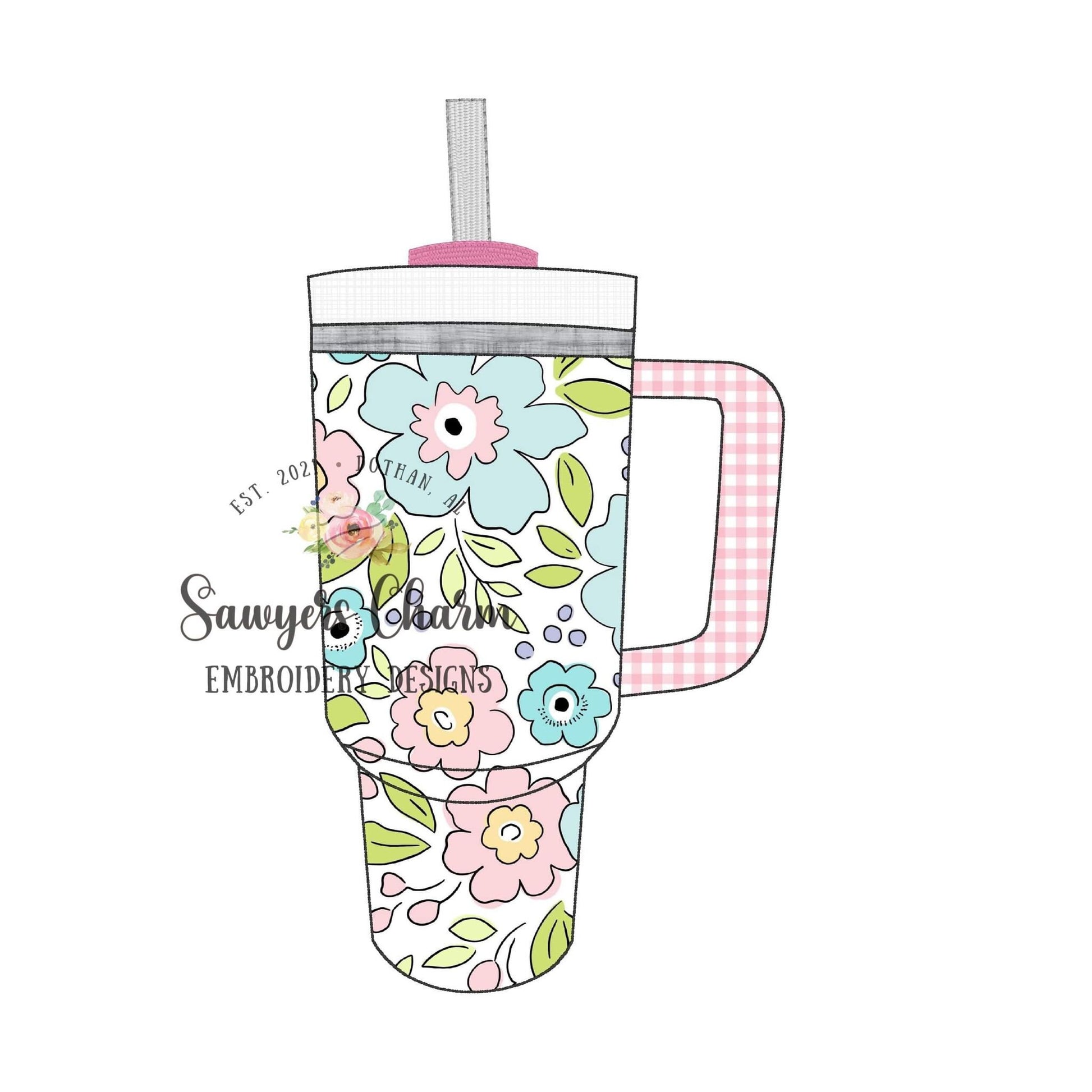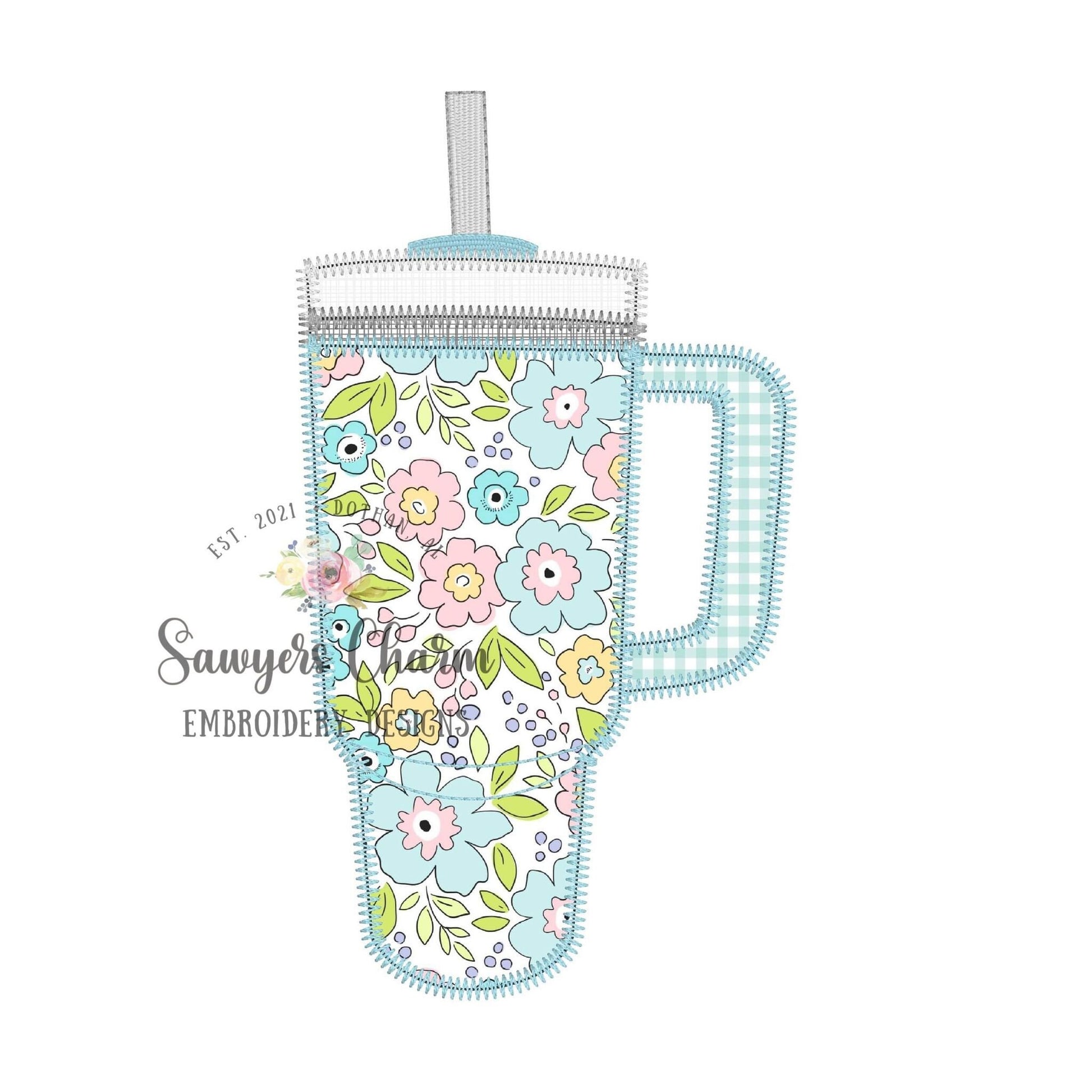BUNDLE Tumbler to go water cups with straw bean & zig zag stitch machine applique embroidery design file, quick stitch, mom life on the go