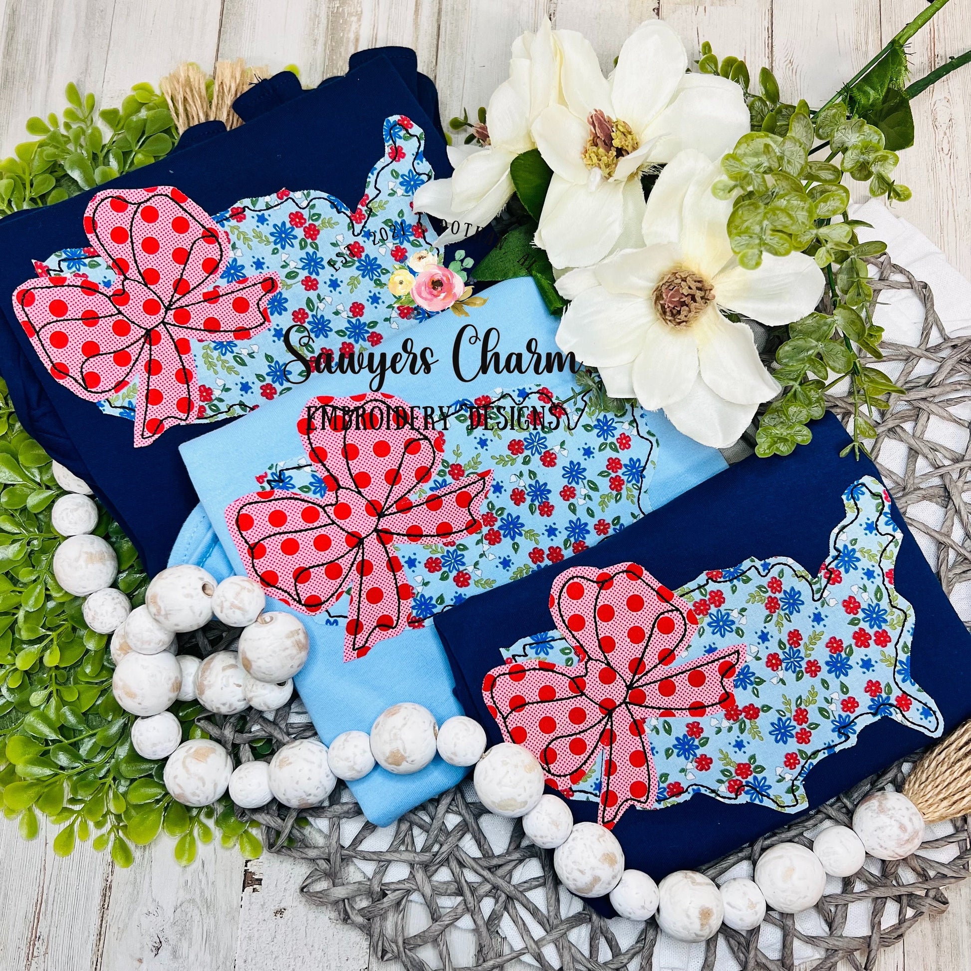 BUNDLE USA map flag with bow bean & zigzag stitch machine embroidery design file, 4th of July, patriotic, stars/stripes, summer, America