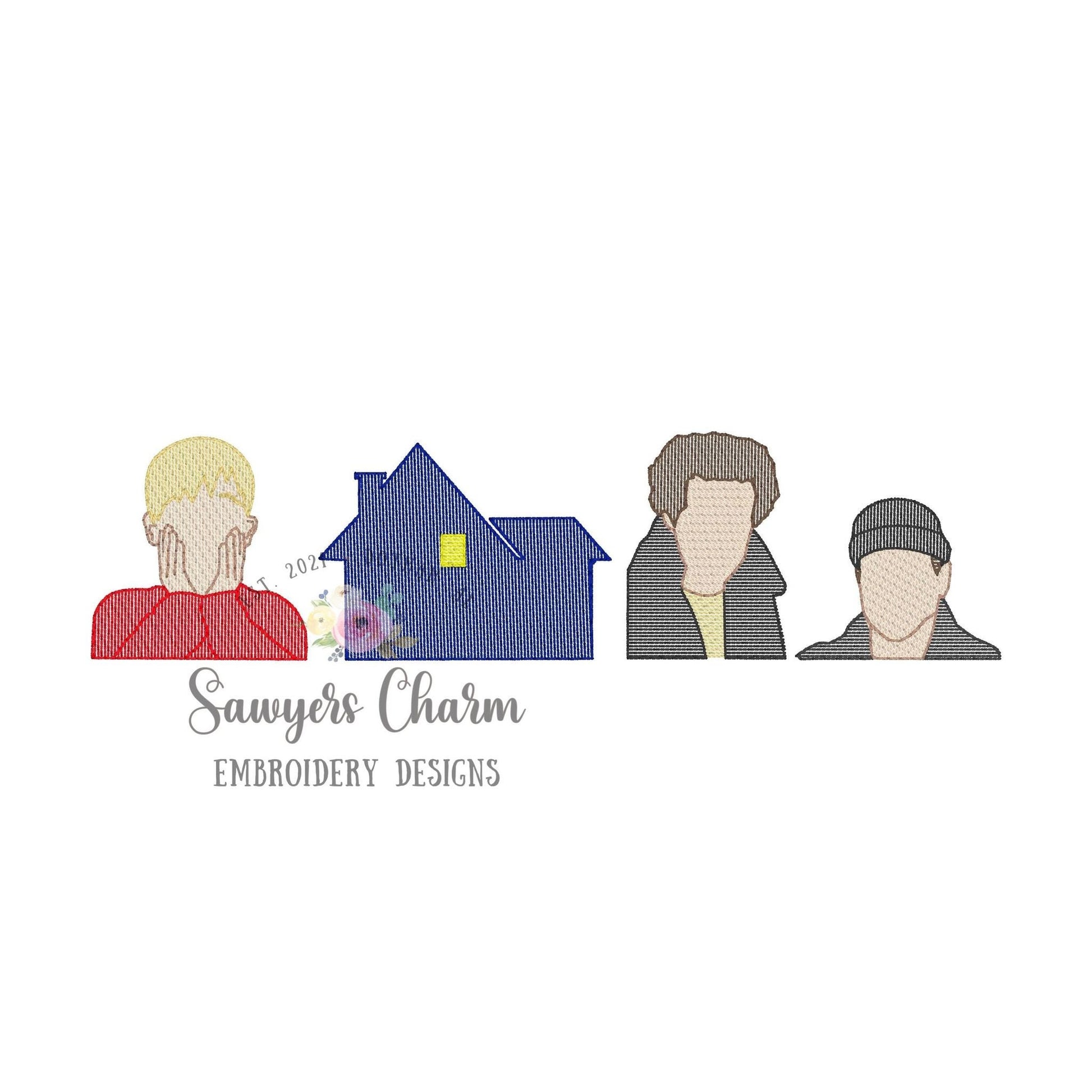 Christmas Home/Kevin/Bandits sketch stitch machine embroidery design file, bean stitch, happy holidays, quick stitch, Merry Christmas thiefs