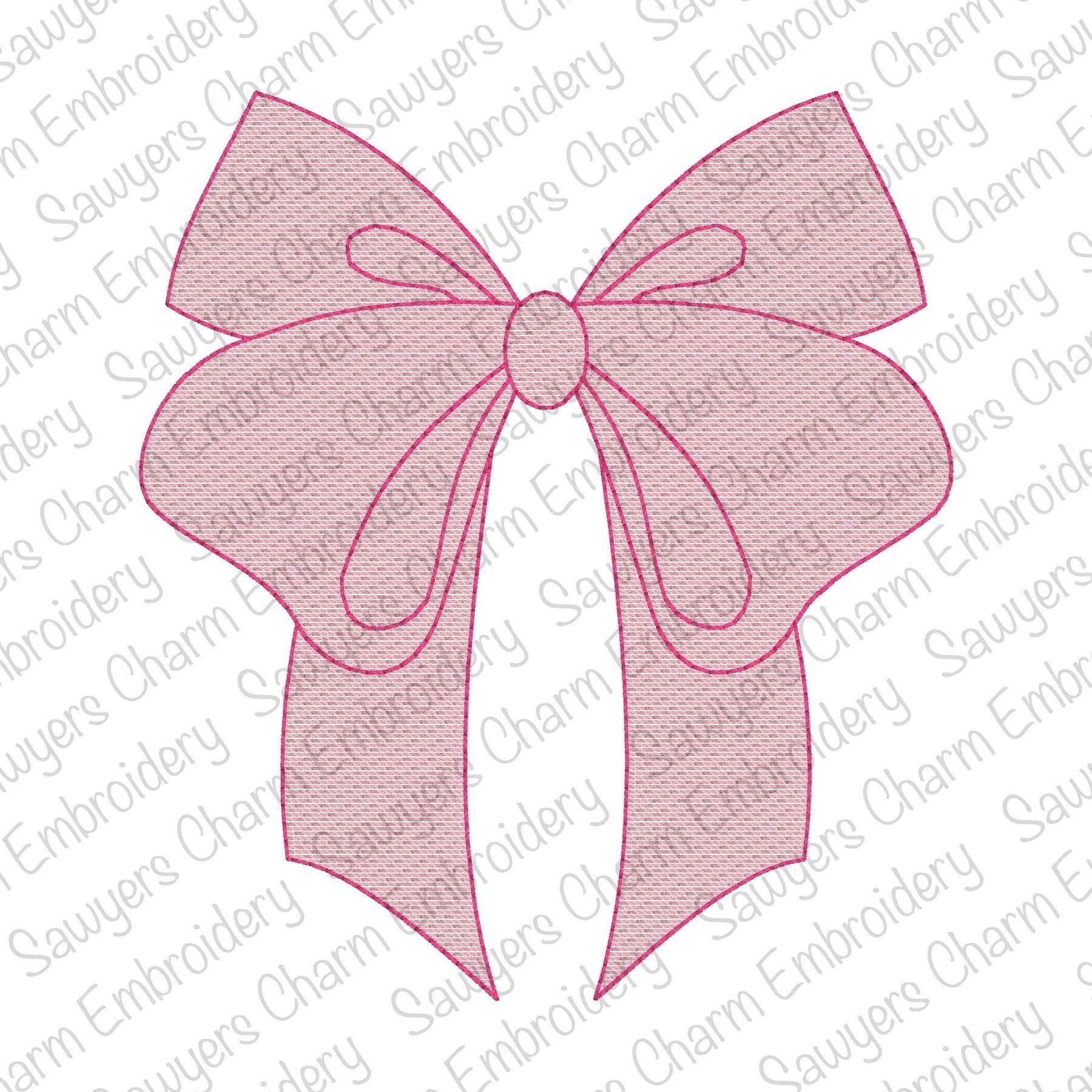 Coquette Bow with long streamers sketch stitch machine embroidery design file, quick stitch, girl hair ribbon, vintage, perfect for monogram