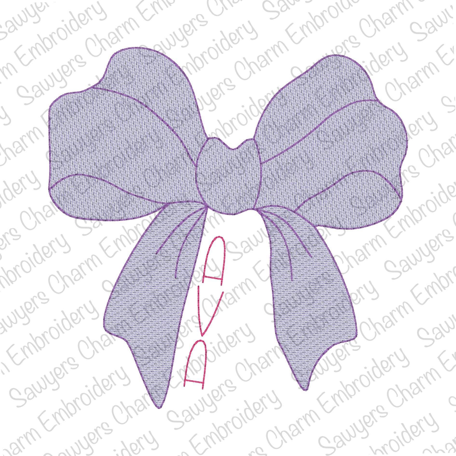Coquette Bow with streamers sketch stitch machine embroidery design file, quick stitch, girls, hair ribbon, vintage, perfect for monogram