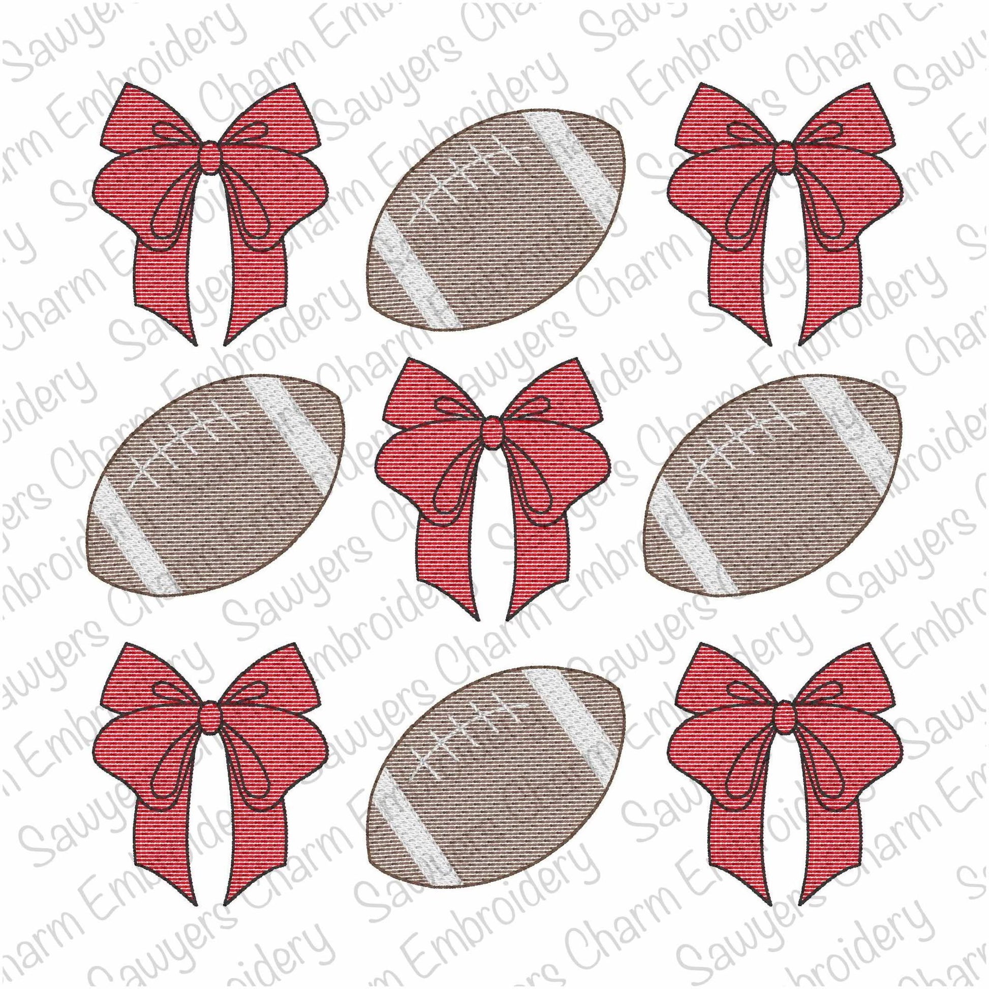 Coquette bows football grid, sketch stitch machine embroidery design, quick stitch, fall sports, large sizes, player, fan, cheer, mascots