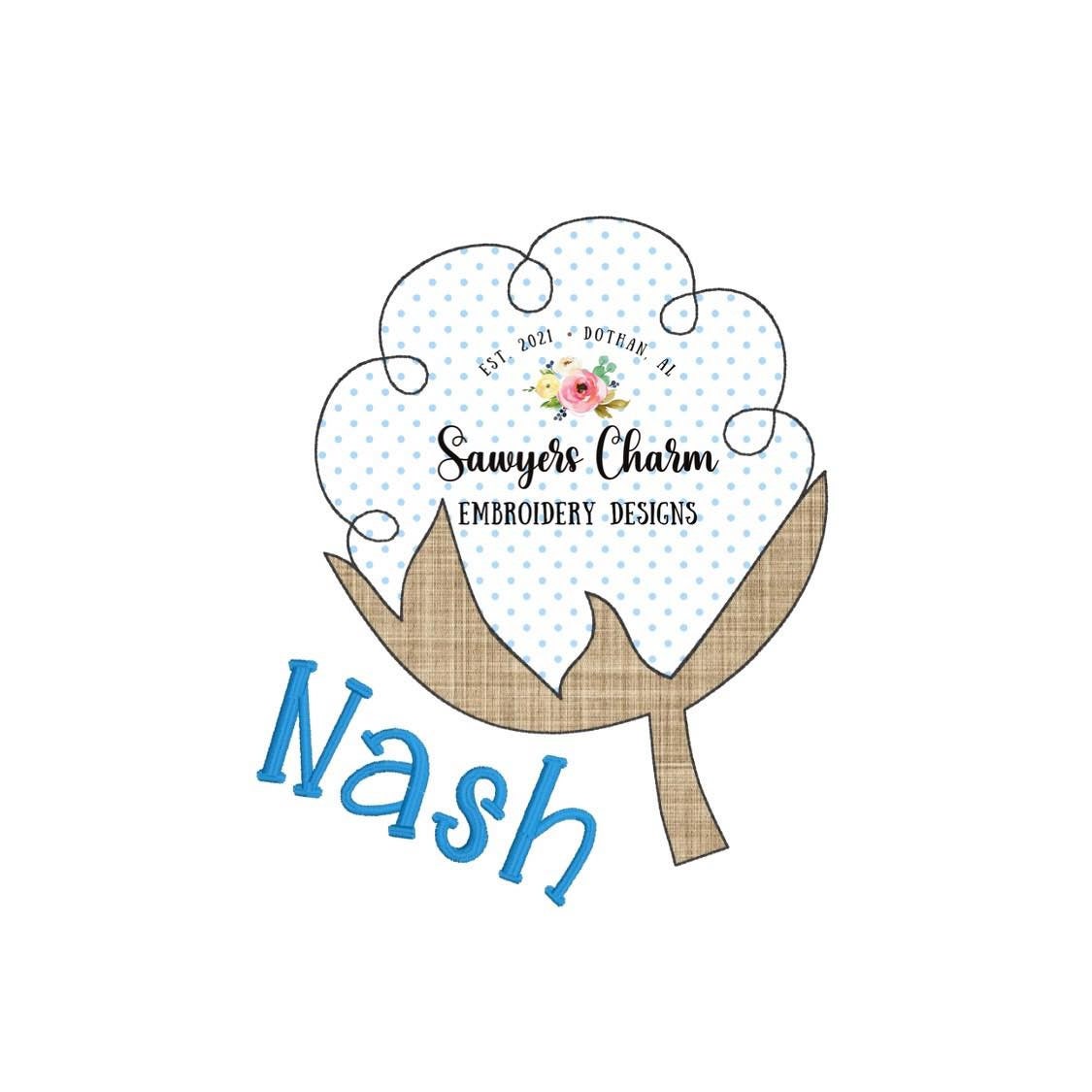 Cotton boll bean stitch applique, machine embroidery design file, fall, harvest, quick stitch, farming
