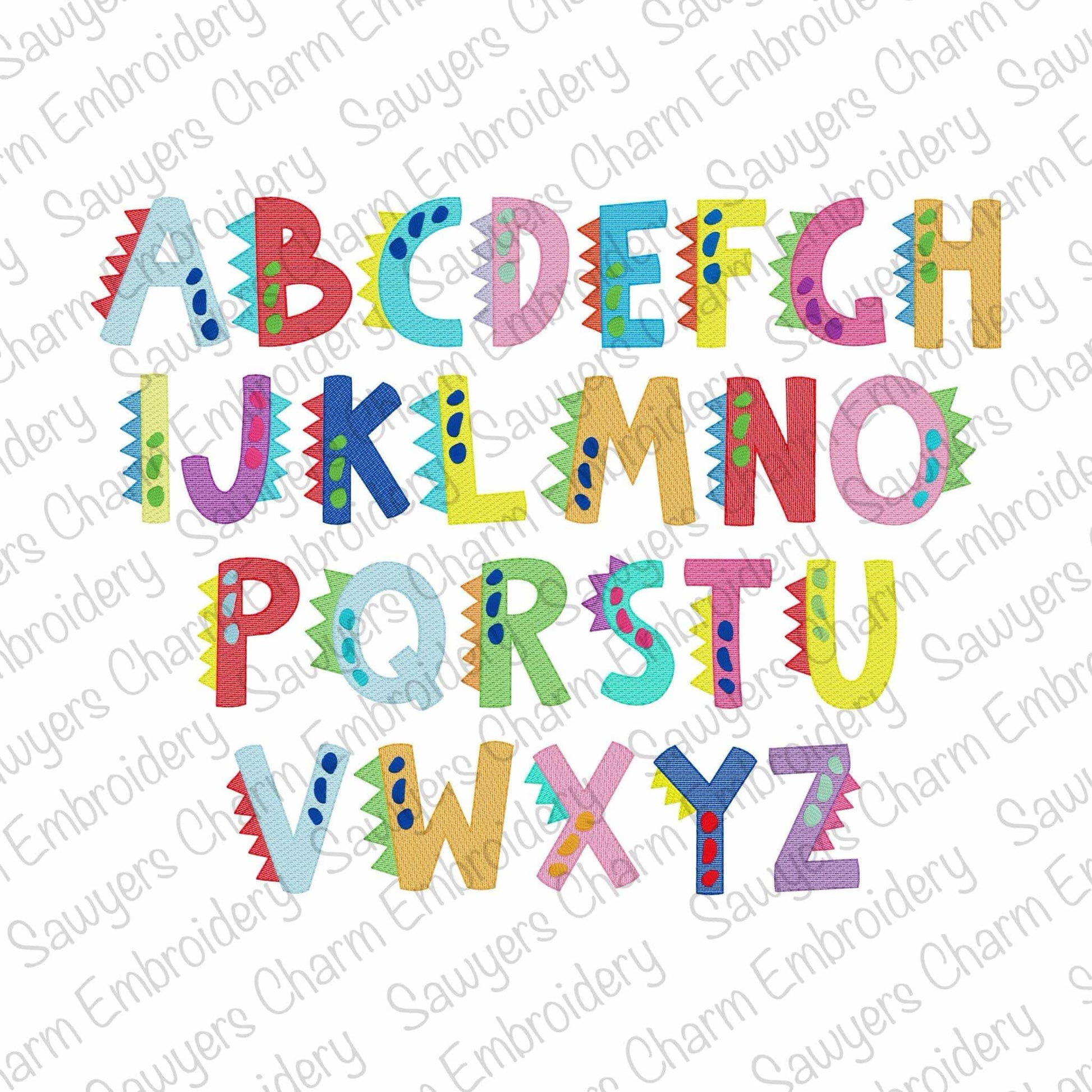 Dinosaur sketch stitch machine embroidery font, bean stitch details, 6 sizes, BX included, perfect for monograms, girl & boy, quick stitch