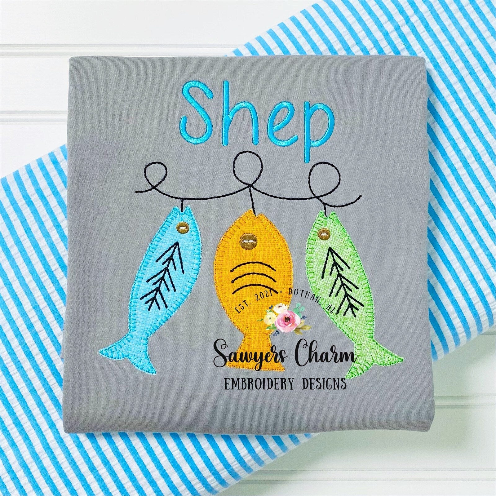 Fish blanket stitch machine applique design embroidery file, fishing lures, quick stitch, bean stitch