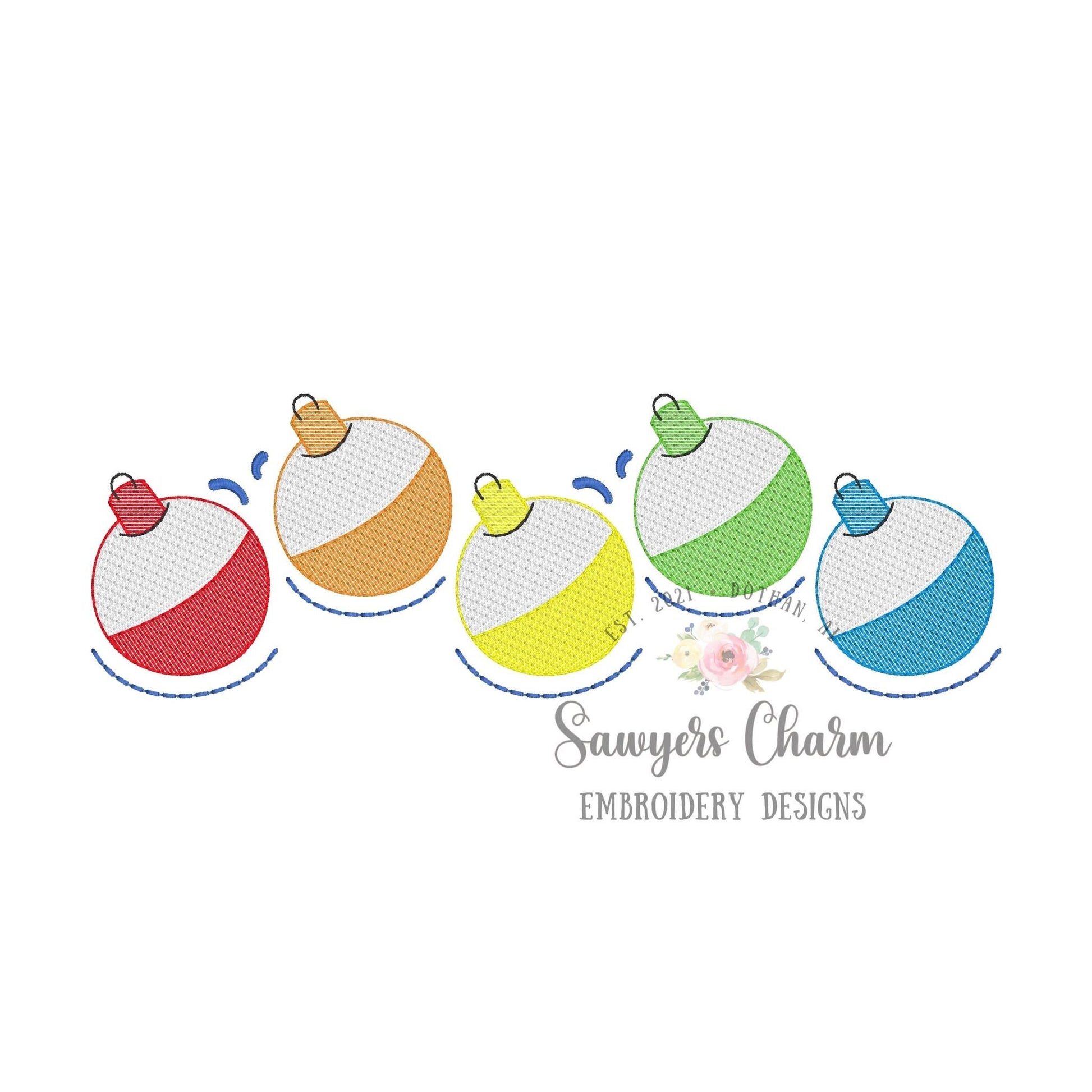 Fishing bobbers in a row sketch stitch machine embroidery design file, quick stitch, spring summer, fish, outdoors, water lake pond bait