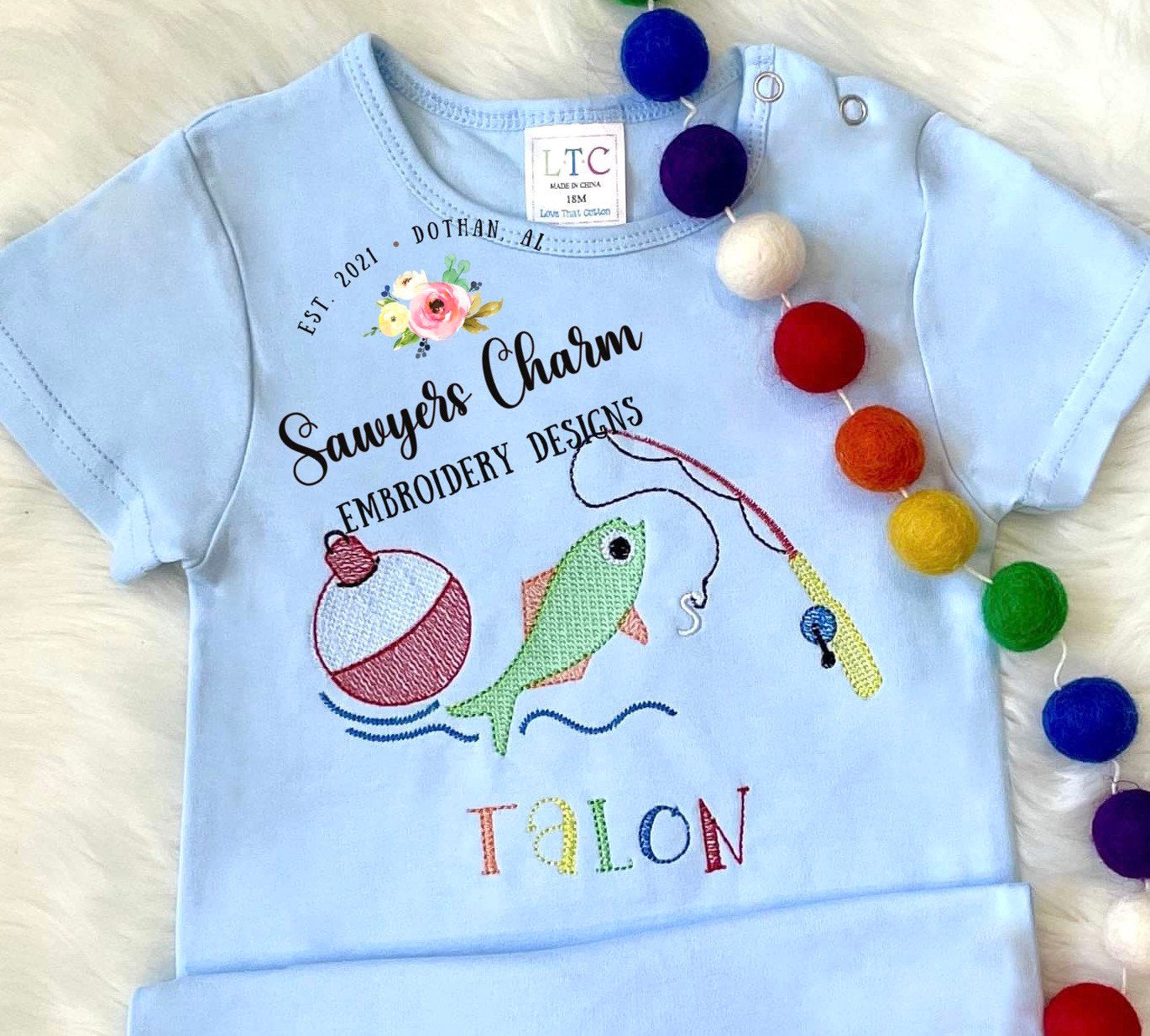 Fishing trio bobber pole fish sketch stitch machine embroidery design file, quick stitch, spring summer, fish, outdoors, water lake pond