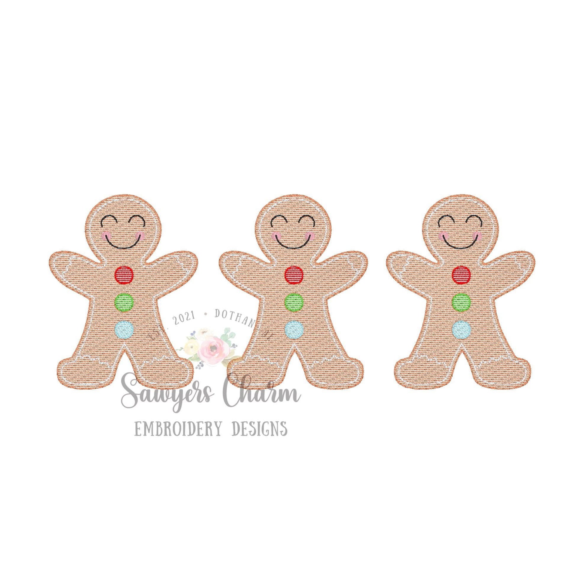 Gingerbread cookies trio sketch stitch machine embroidery design file, HO HO HO, Merry Christmas, happy holidays, baking cooking,